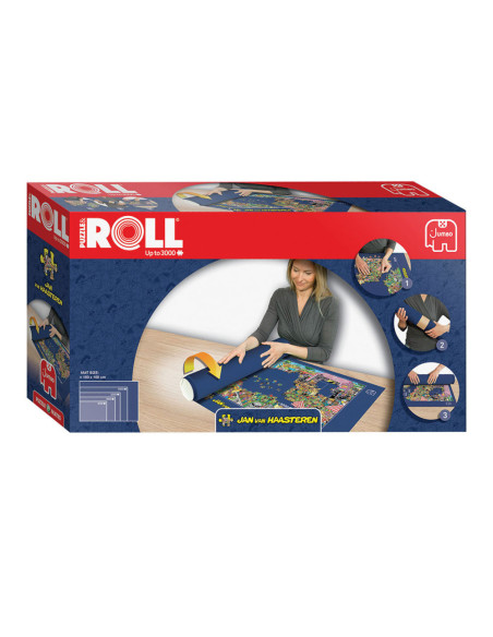 Deze Jan van Haasteren Puzzle & Roll is de handige manier om onafgemaakte puzzels op te bergen of mee te nemen. Leg je puzzel eenvoudig op het speciale vilt. Wil je even pauze nemen of je puzzel opbergen voor de volgende keer? Rol de viltmat rond de Puzzle & Roll-buis en zet hem vast met de bandjes. De speciale stof houdt alle stukjes op hun plek. De bandjes houden de puzzelmat veilig op zijn plek rond de buis, zodat je de puzzel heel makkelijk kunt opbergen of meenemen. Geen zorgen meer over waar je je puzzel moet laten zolang hij nog niet klaar is, of over puzzelstukjes die kunnen zoekraken als je hem opzij schuift: Puzzle & Roll lost het voor je op! Puzzle & Roll is speciaal ontwikkeld om de meeste standaard puzzels van 1500 tot 3000 stukjes (tot maximaal 122 x 85 cm) op te bergen en mee te nemen.