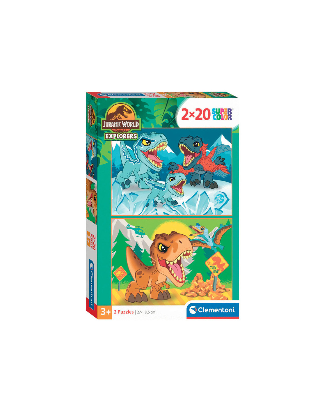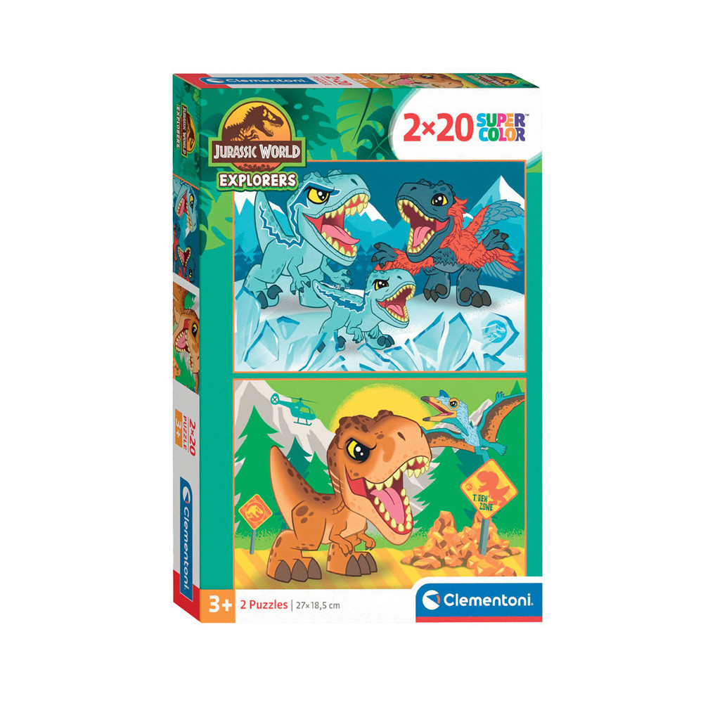 Clementoni puzzels. In deze doos zit een set van twee 20-delige legpuzzels van Jurassic World! Gemaakt van stevig karton en met heldere kleuren.