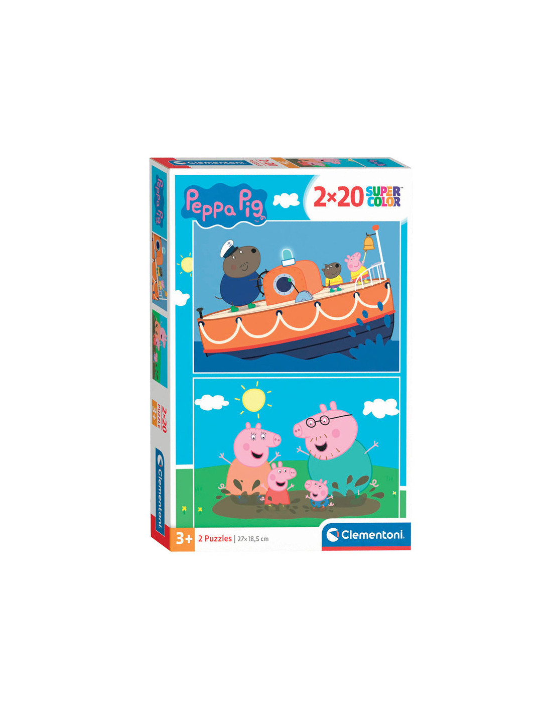 Clementoni puzzels. In deze doos zit een set van twee 20-delige legpuzzels van Peppa Big! Gemaakt van stevig karton en met heldere kleuren.