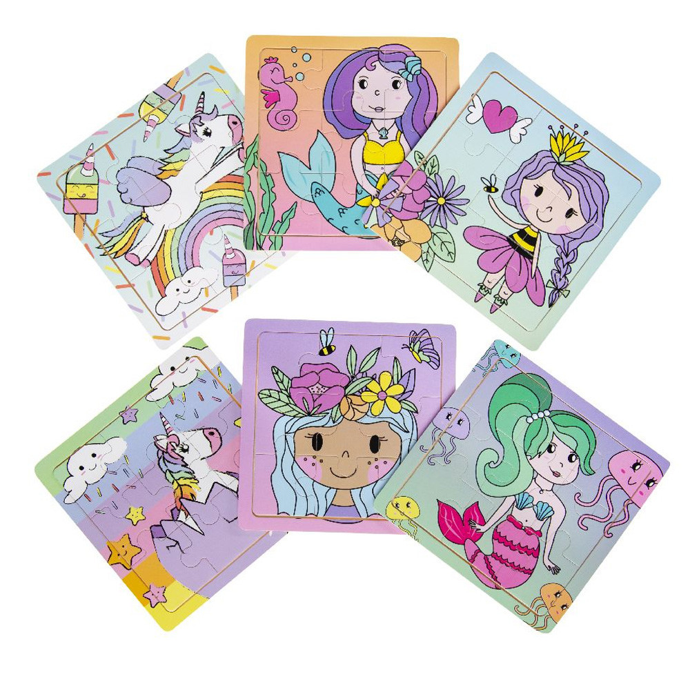 Elke puzzel bestaat uit hoogwaardige houten stukjes die zorgvuldig zijn vervaardigd om langdurig speelplezier te garanderen. De kleurrijke afbeeldingen van prinsessen, zeemeerminnen en eenhoorns zullen de verbeelding van elk kind inspireren terwijl ze stukje voor stukje de puzzel compleet maken.