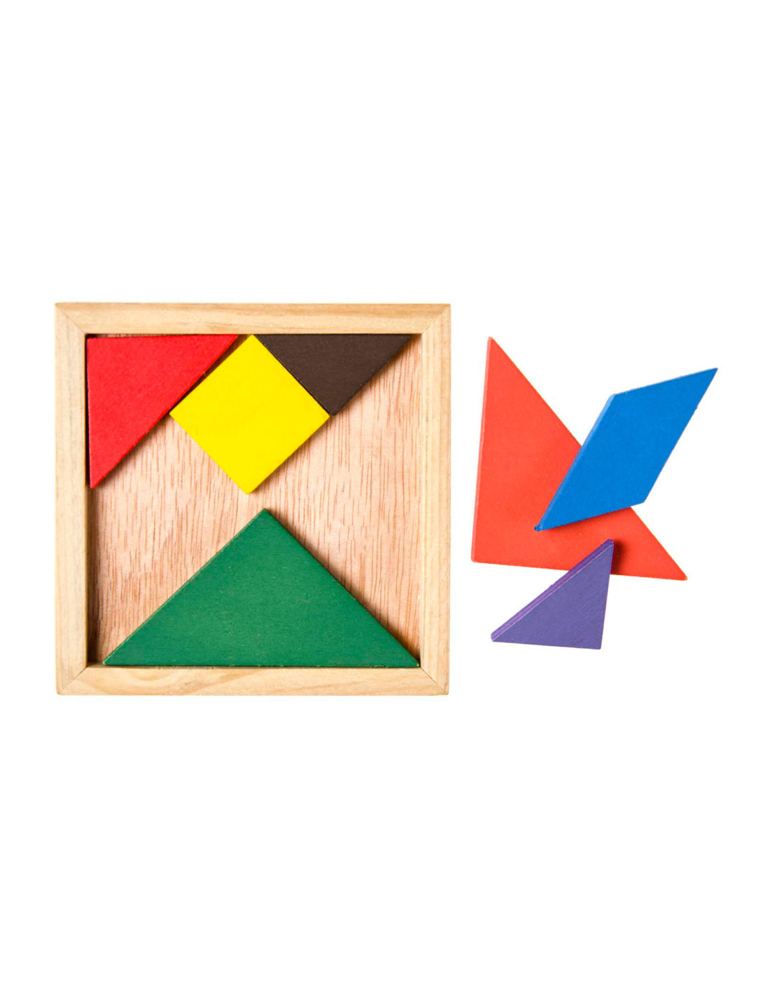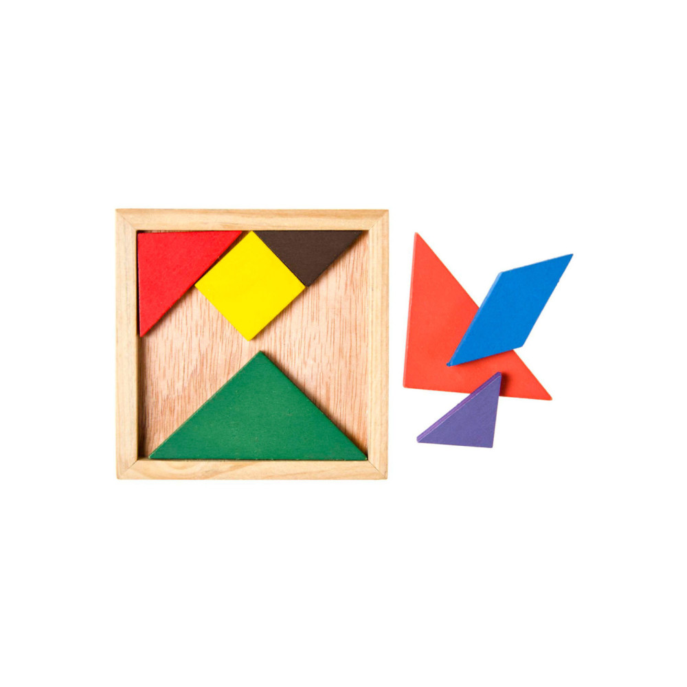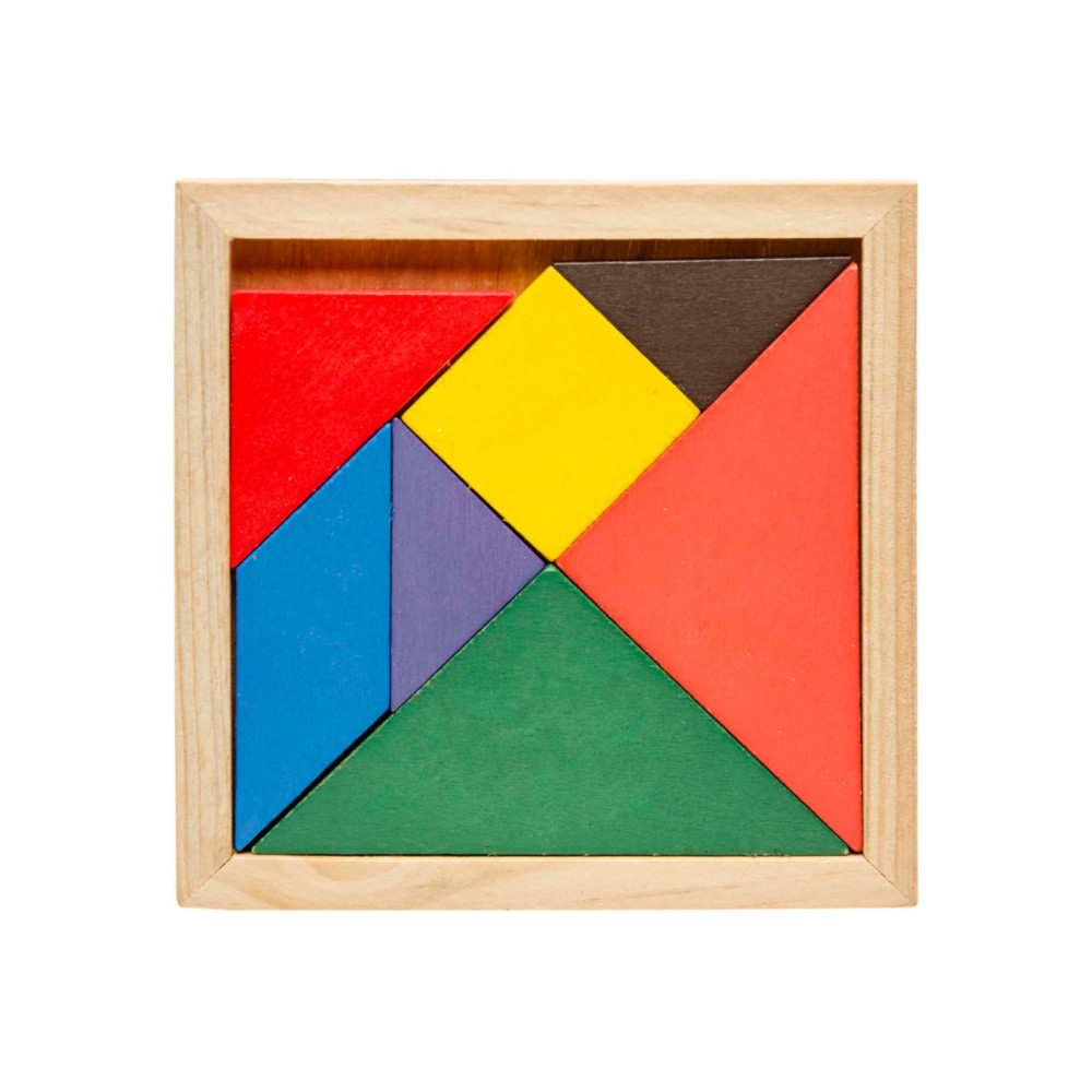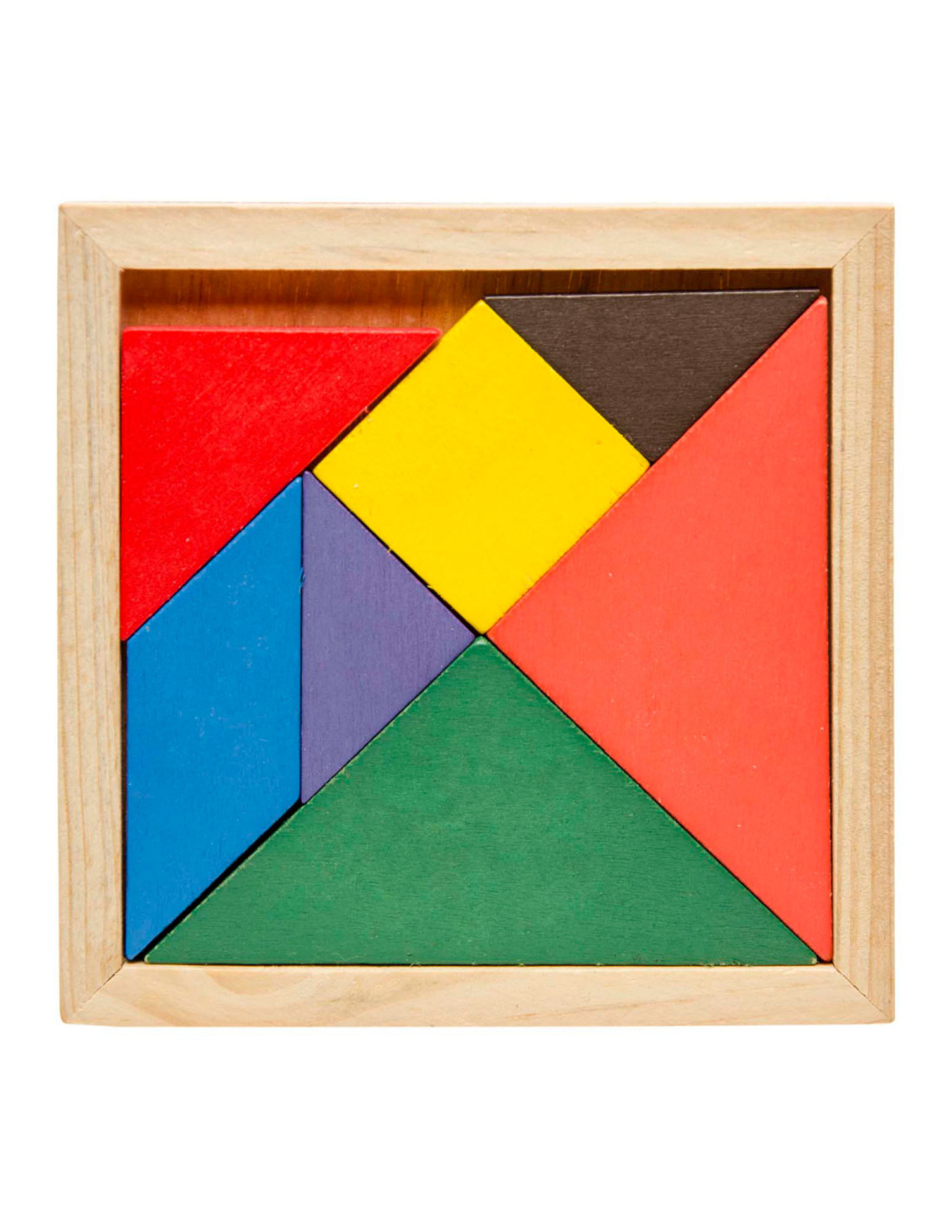 Dit kleurrijke houten tangramspel daagt kinderen uit om figuren te leggen met zeven puzzelstukken in verschillende vormen en felle kleuren. Het stimuleert logisch denken, creativiteit en ruimtelijk inzicht en is compact genoeg om mee te nemen. Dankzij het stevige hout en de handige houten lijst is het ideaal voor thuis of in de klas.