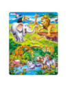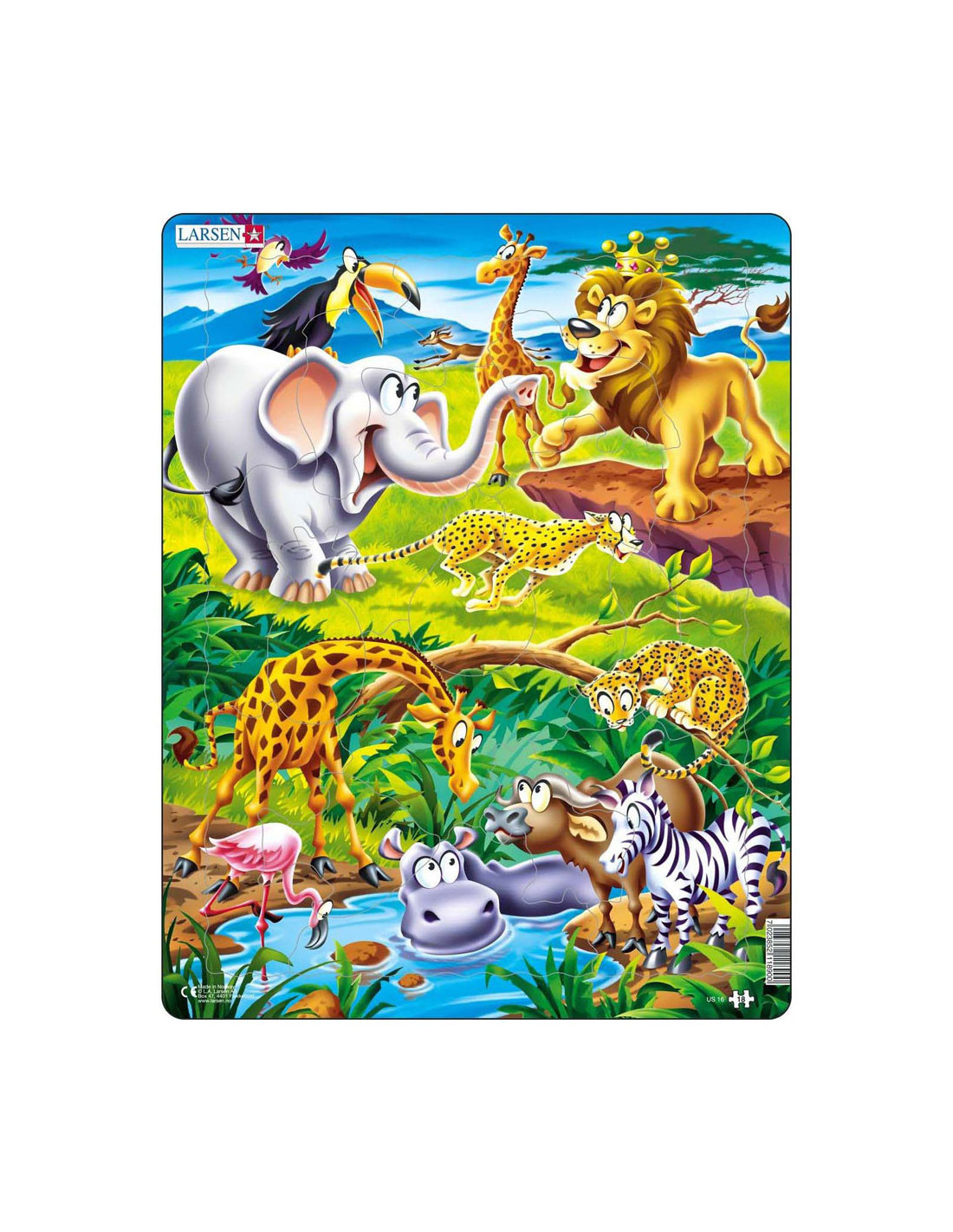 De puzzels van Larsen hebben een frame waarin de puzzelstukjes keer op keer makkelijk gelegd kunnen worden. De puzzelstukjes hebben elk een eigen unieke vorm die maar op één plek in het frame past. Doordat de totale dikte van het gerecyclede karton van de Larsen puzzels 4,4 mm dik is, gaat deze jaren mee. In het thema Larsen Dieren Puzzels' zijn de dieren van over de hele wereld te vinden. Leer alle dieren spelenderwijs kennen! Waarom Larsen? - De jongste kinderen ontwikkelen hun motoriek met de unieke puzzelstukjes. - Ook oudere kinderen spelen en leren veel over interessante thema's.- Originele thema's moedigen de kinderen aan en helpen hen zich te concentreren. - Extra dikke en stevige puzzelstukjes.- Gemaakt in Europa van gerecycled karton.
