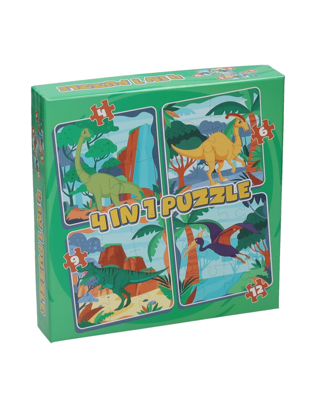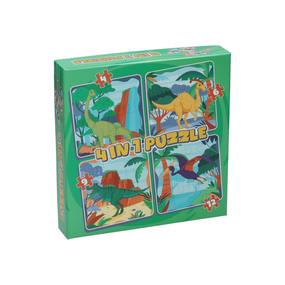 4-in-1 puzzel variërend van 4 tot 12 stukjes, met dinosaurussen. Geschikt voor kinderen vanaf 3 jaar.