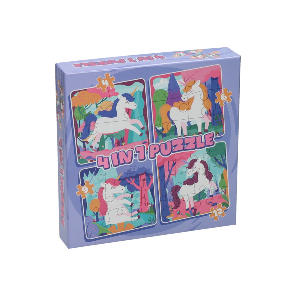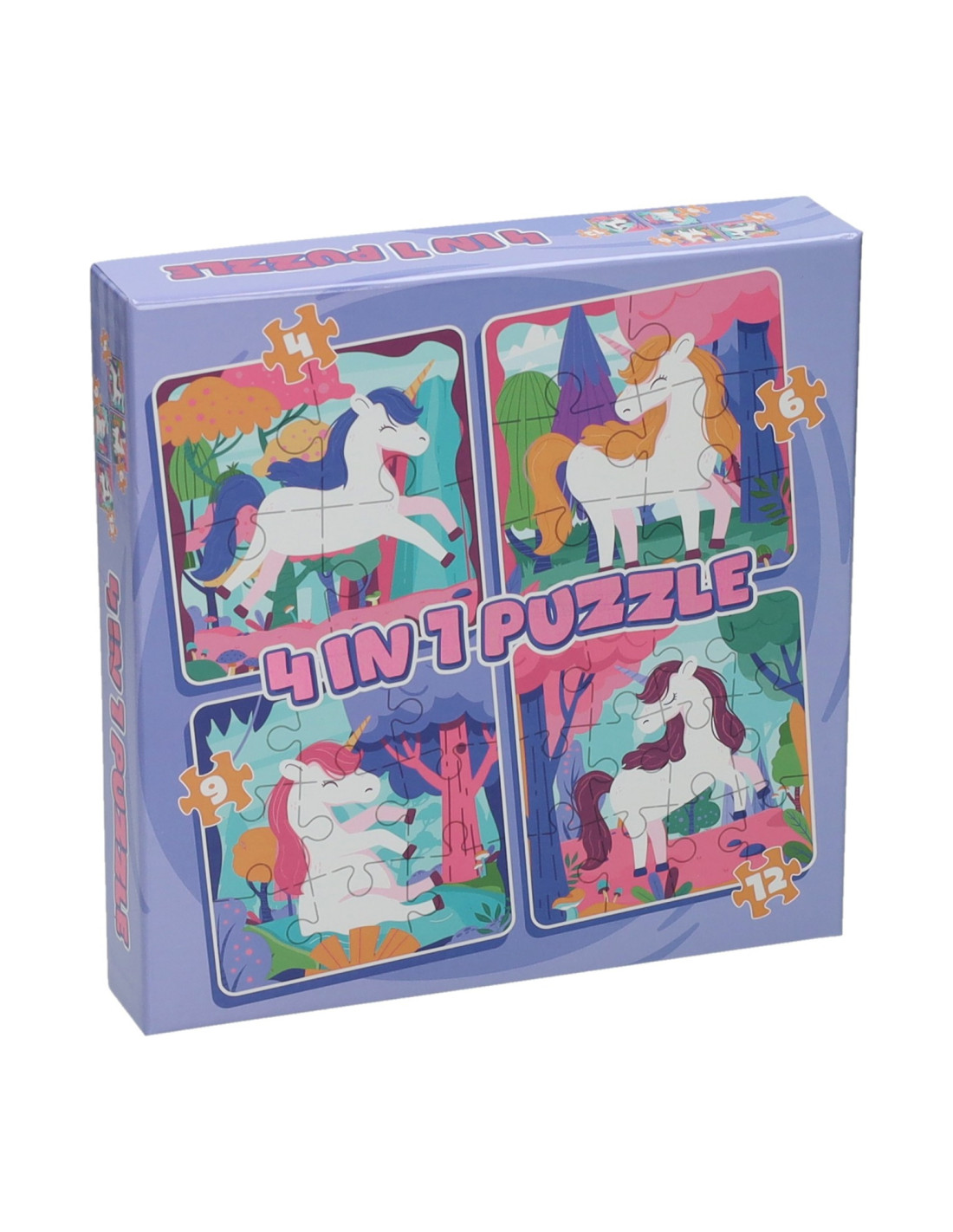 4 puzzels variërend van 4 tot 12 stukjes. Geschikt voor kinderen vanaf 3 jaar.