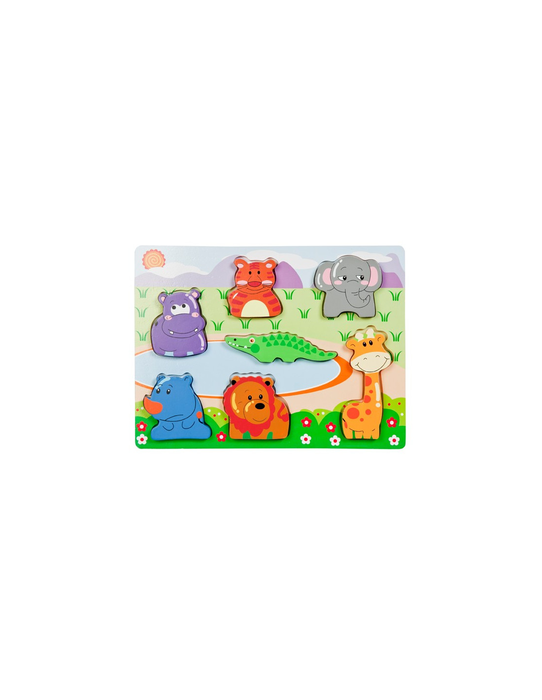 Puzzel met opstaande stukken met als afbeelding en krokodil, een olifant, een nijlpaard etc. Ideaal voor beginnende puzzelaars!