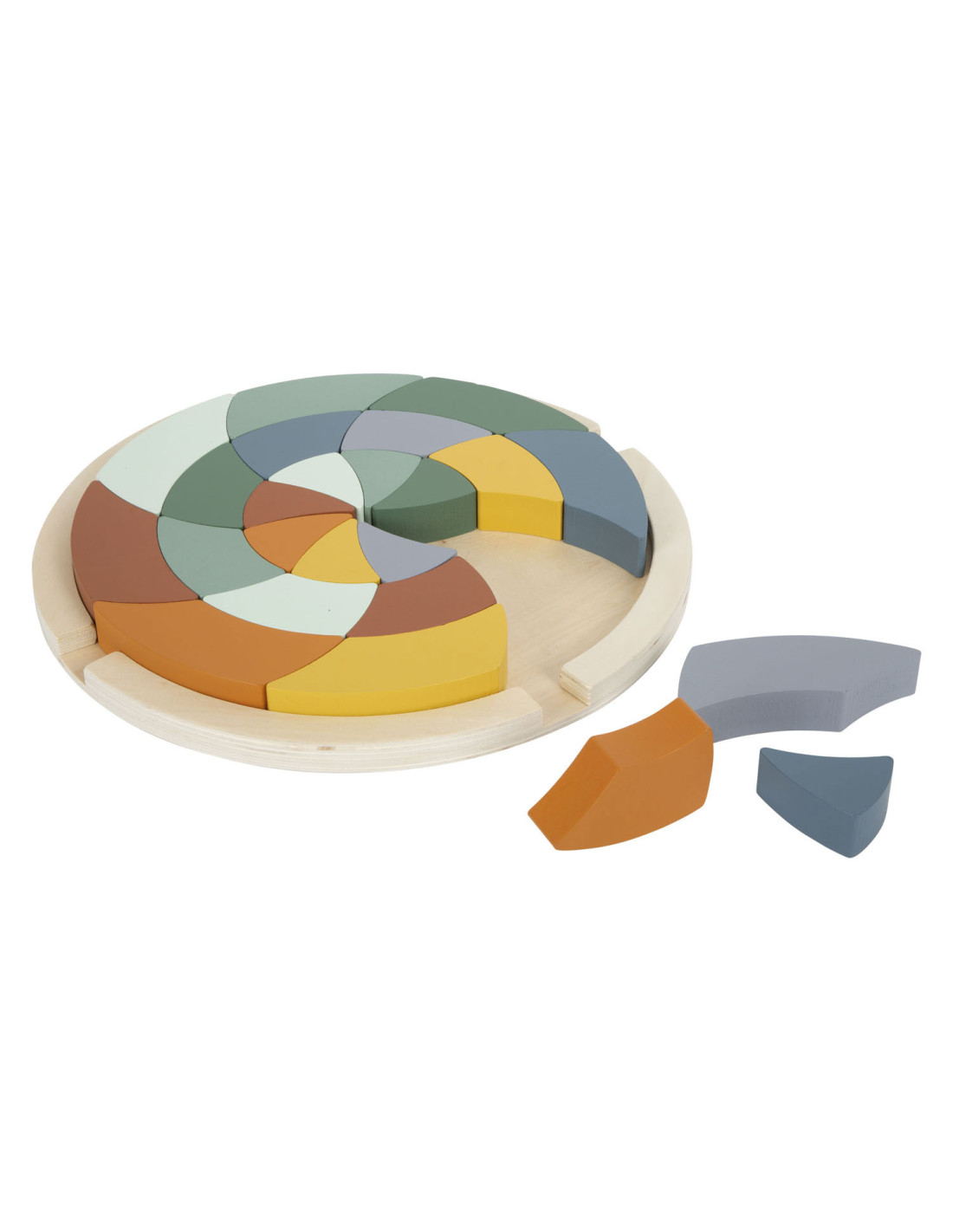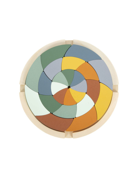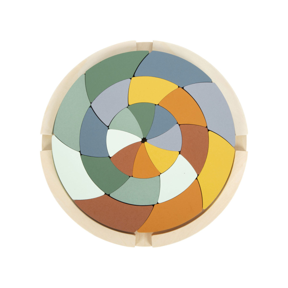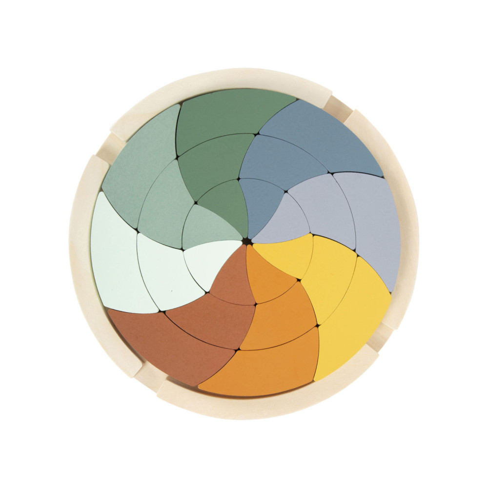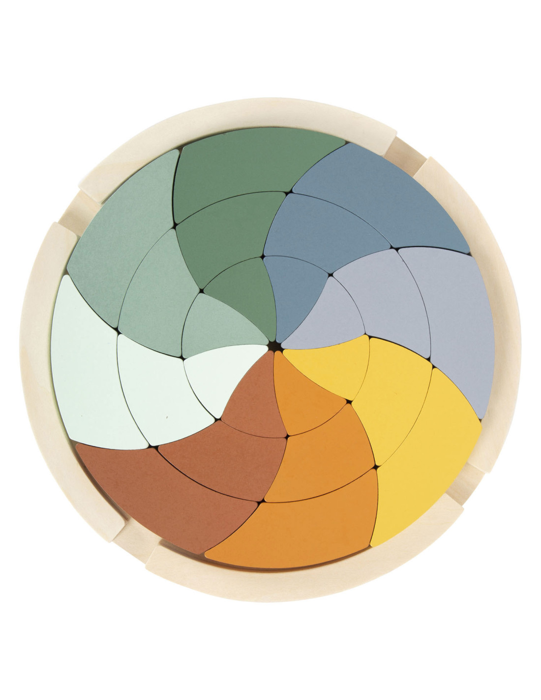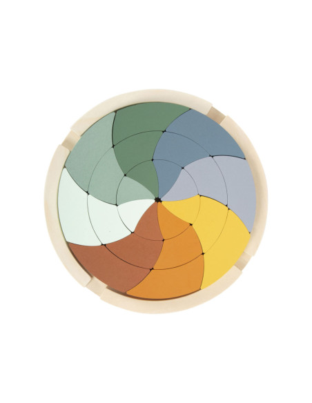 Deze veelzijdige kleurenpuzzel bestaat uit 24 stukjes in moderne kleuren en biedt een speelse uitnodiging tot puzzelen, sorteren, stapelen en patronen maken. De kleurenpuzzel is geïnspireerd op de Montessori-onderwijsmethode en moedigt kinderen aan om creatief en met verbeeldingskracht te spelen, terwijl het hun verbeeldingskracht en hun begrip van verschillende maten, kleuren en vormen traint. De houten puzzelstukjes kunnen samen worden gelegd om unieke patronen te creëren, zowel binnen als buiten het puzzelframe.