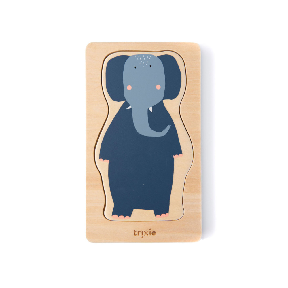 Wie zit er verstopt achter Mevr. Olifant? Het stapelen van de verschillende dieren in de juiste volgorde zal de fijne motoriek van kinderen verbeteren, evenals hun cognitieve vaardigheden. Kinderen leren over dieren en kleuren, terwijl ze deze in de juiste volgorde samen puzzelen. De puzzel is gemaakt van 100% FSC © gecertificeerd hout. Alle verven zijn op waterbasis en veilig voor baby'