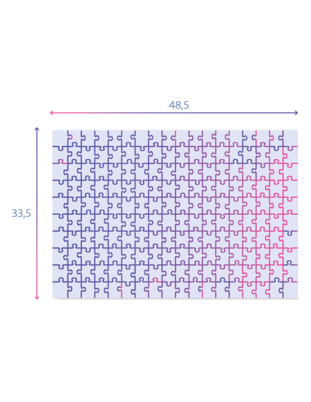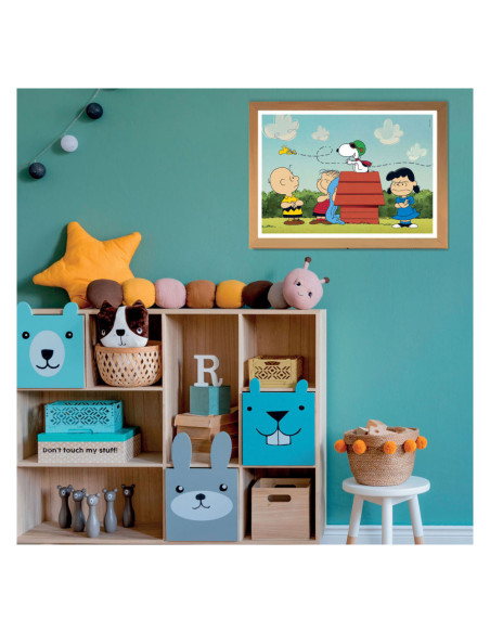 Puzzel met 180 stukjes van Snoopy en zijn vrienden. Gelegd is de puzzel 48,5 x 33,5 centimeter groot.