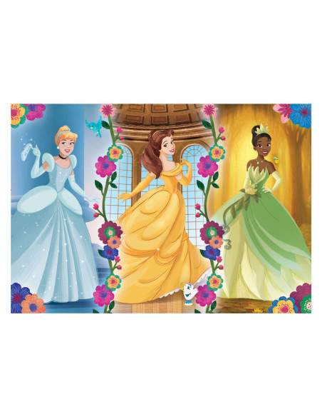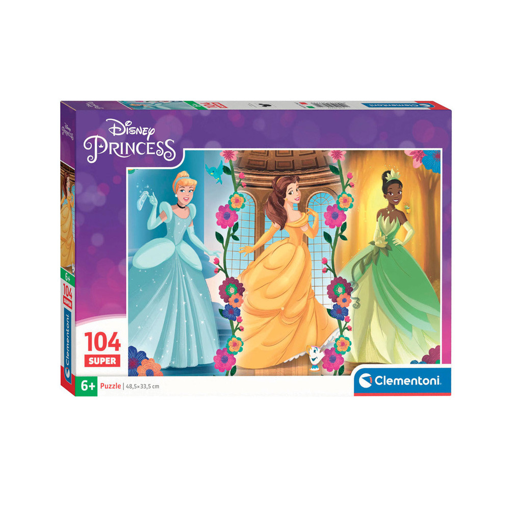 104 delige legpuzzel van Disney prinsessen Assepoester, Belle en Tiana. Deze SuperColor Clementoni puzzels begeleiden kinderen bij hun ontwikkeling. Boeiende afbeeldingen met heldere glanzende kleuren maken het puzzelen nog aantrekkelijker. Deze puzzels helpen het observatievermogen, logica en vaardigheid van het kind te bevorderen. De kwalitatief volle materialen en de exclusieve printtechniek staan garant voor levendige en heldere afbeeldingen.