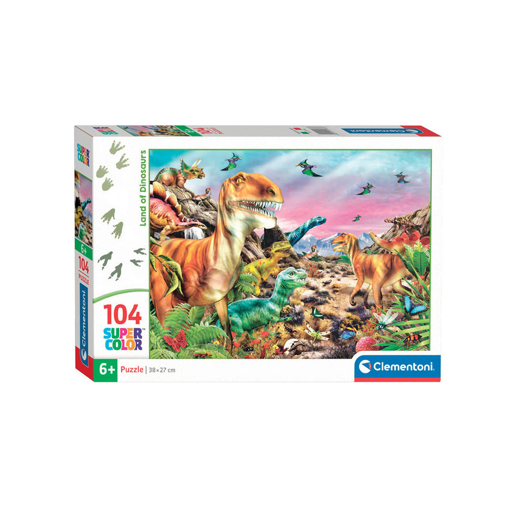 104 delige legpuzzel van verschillende dino's. Deze SuperColor Clementoni puzzels begeleiden kinderen bij hun ontwikkeling. Boeiende afbeeldingen met heldere glanzende kleuren maken het puzzelen nog aantrekkelijker. Deze puzzels helpen het observatievermogen, logica en vaardigheid van het kind te bevorderen. De kwalitatief volle materialen en de exclusieve printtechniek staan garant voor levendige en heldere afbeeldingen.