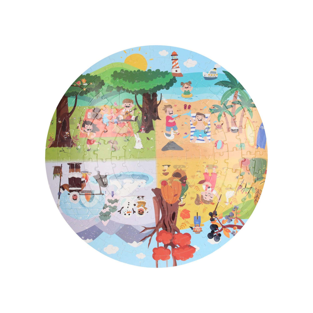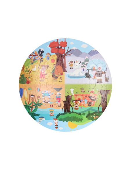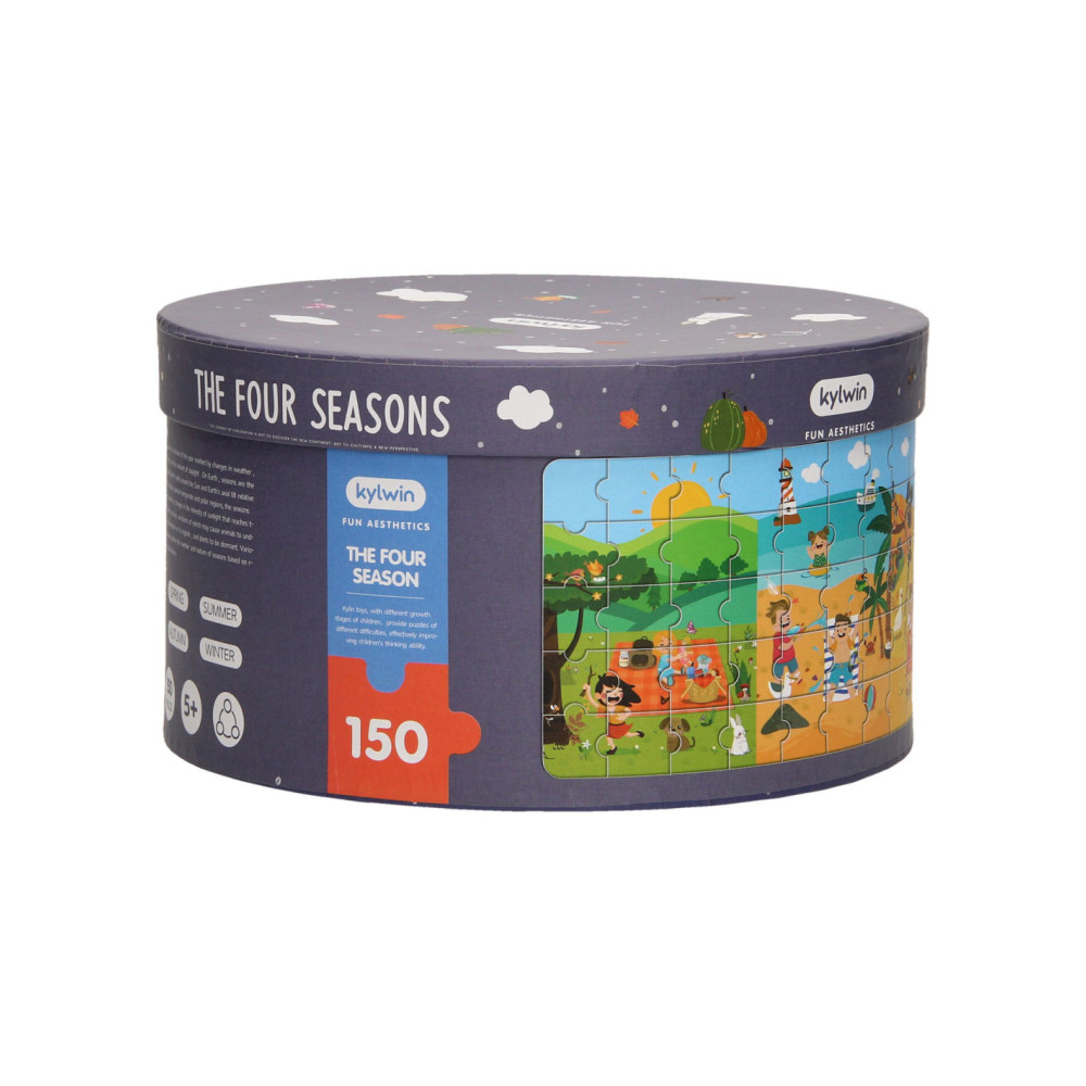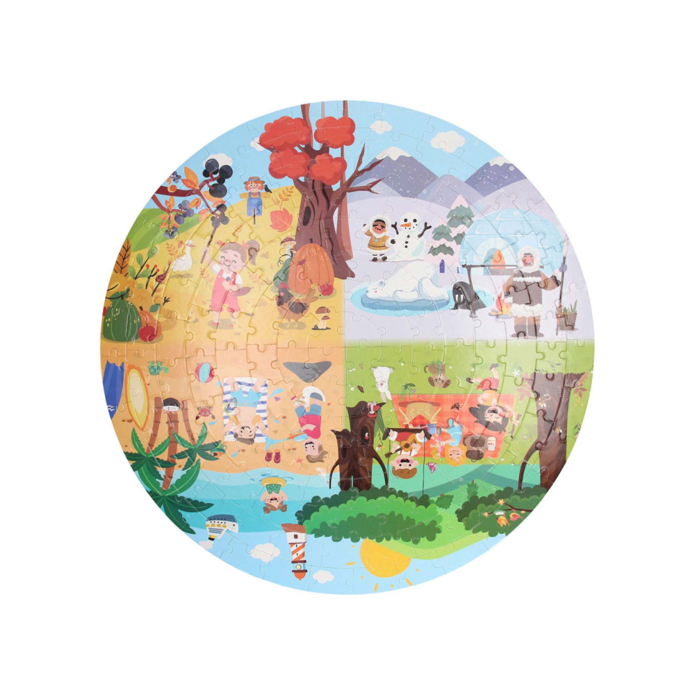 Ronde puzzel in opbergbox, vier seizoenen, 150 puzzelstukjes.