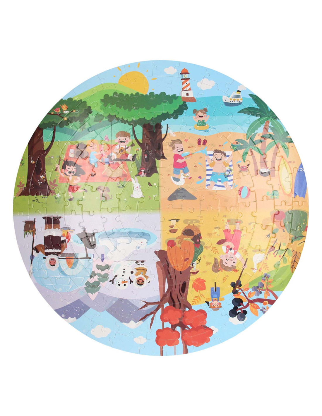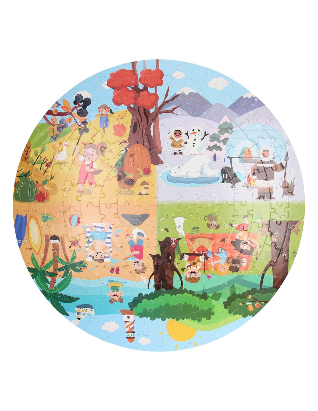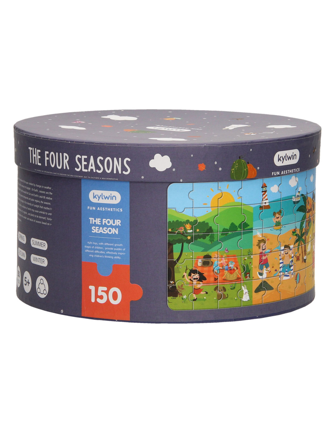Ronde puzzel in opbergbox, vier seizoenen, 150 puzzelstukjes.