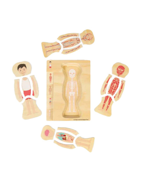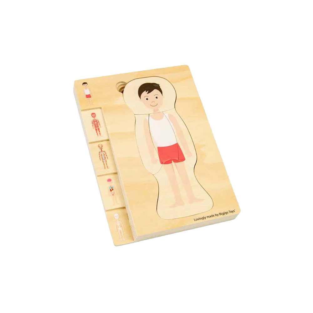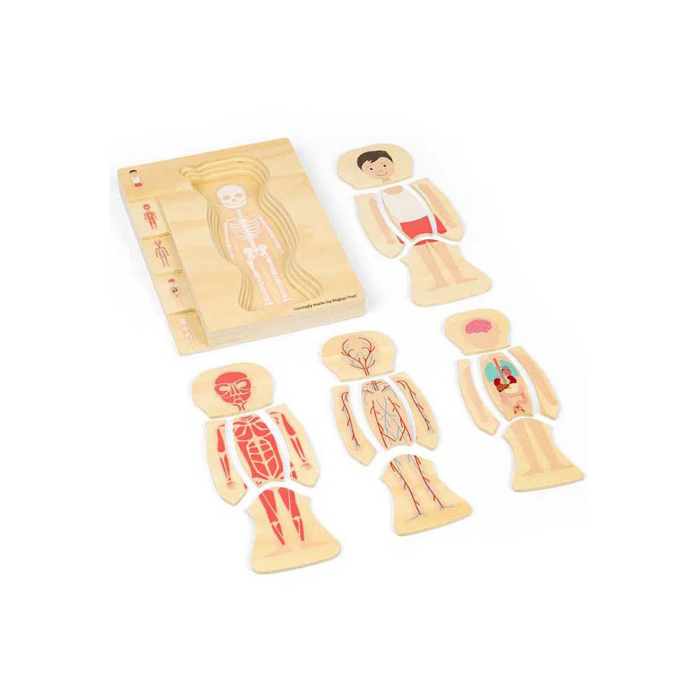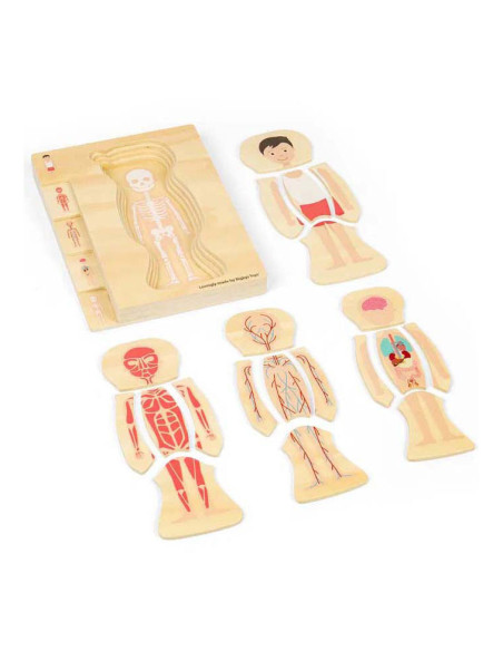 Ontdek de wonderen van het menselijk lichaam met onze fascinerende man anatomie puzzel! De puzzel bestaat uit 26 puzzelstukken verdeeld in meerdere lagen, die elk een ander systeem onthullen, van het skelet tot de vitale organen en ingewikkelde spieren. Terwijl kinderen elke laag aan elkaar puzzelen, krijgen ze een praktisch begrip van anatomie, ontwikkelen ze hun kennis en voeden ze hun nieuwsgierigheid.