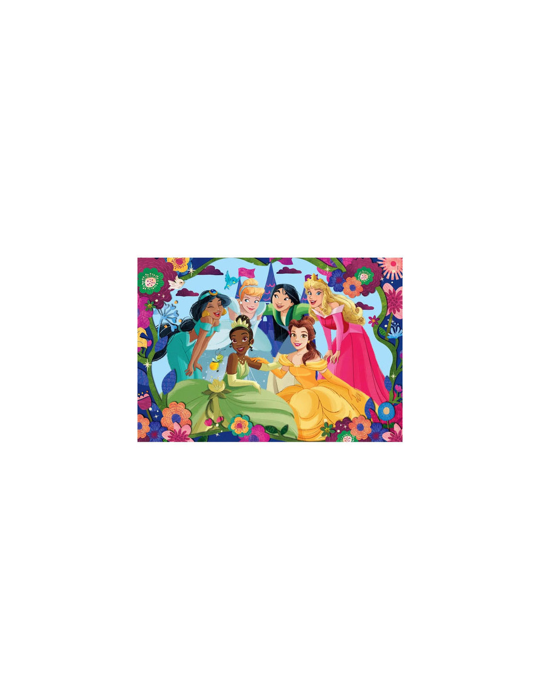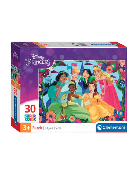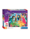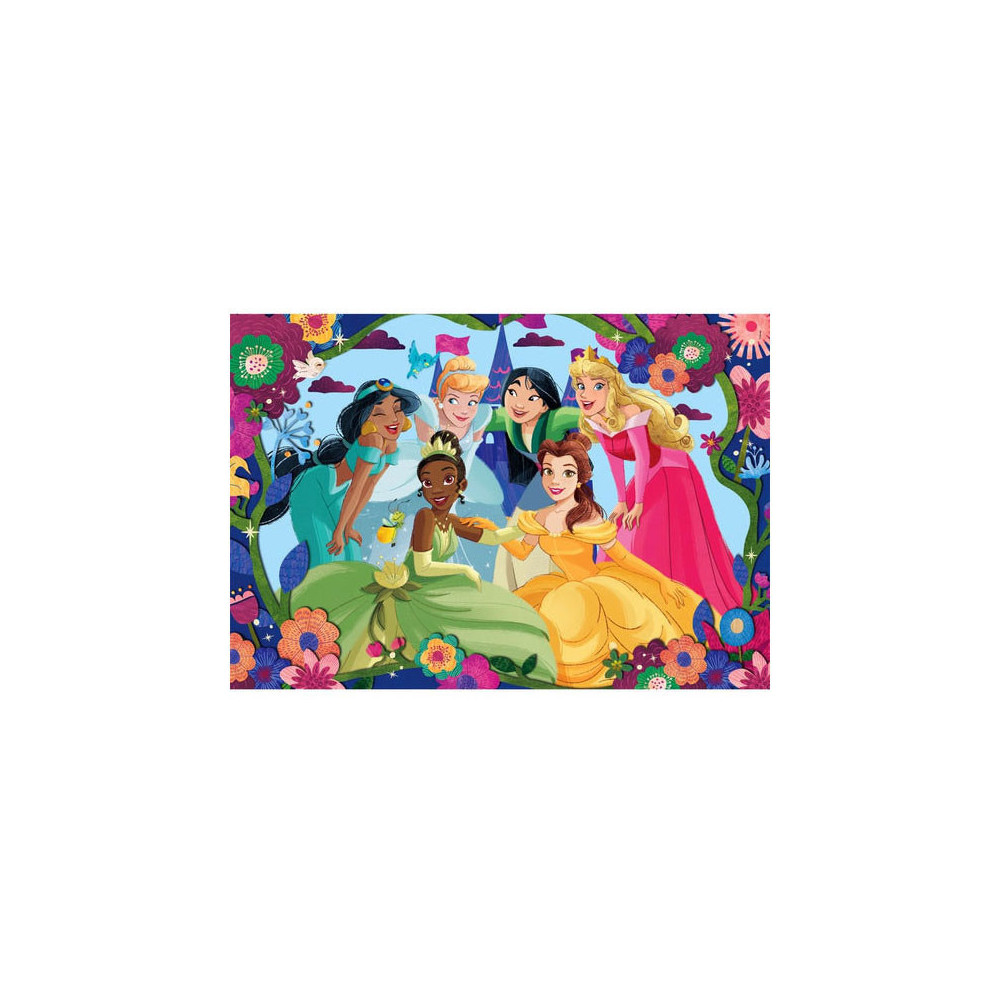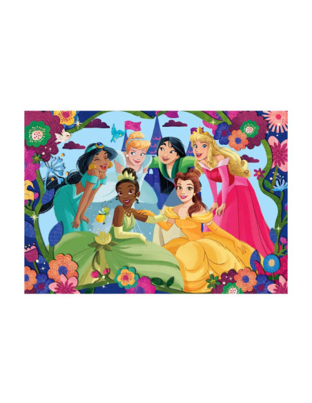 Kinderpuzzel met de Disney prinsessen Jasmine, Tiana, Assepoester, Mulan, Belle en Doornroosje erop afgebeeld! Met 30 puzzelstukjes is deze puzzel geschikt voor kinderen vanaf 3 jaar oud. De puzzel is compleet 33,5 bij 23,5 centimeter.