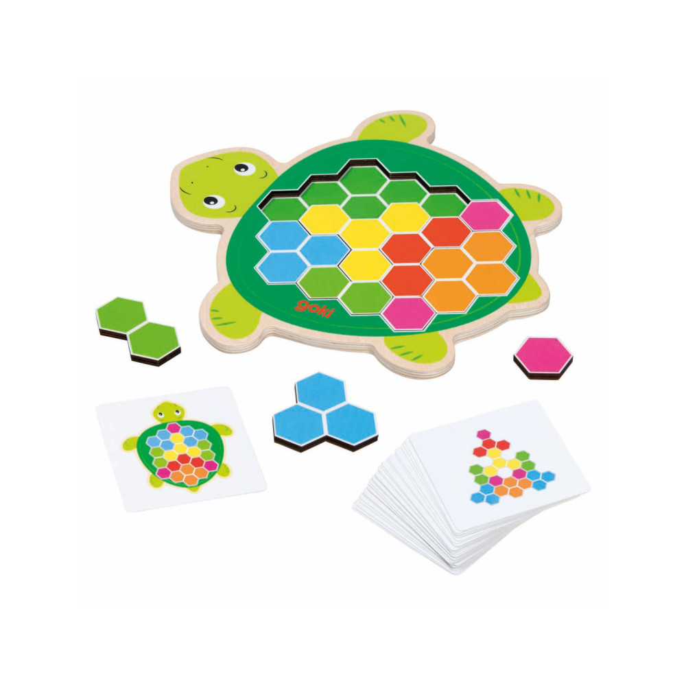 “Rosie” heeft een ongewoon kleurrijk schild voor een schildpad. De kinderen moeten de schildpatronen in Josie 'verwerken' volgens de sjabloontegels. Een uitdagend spel!