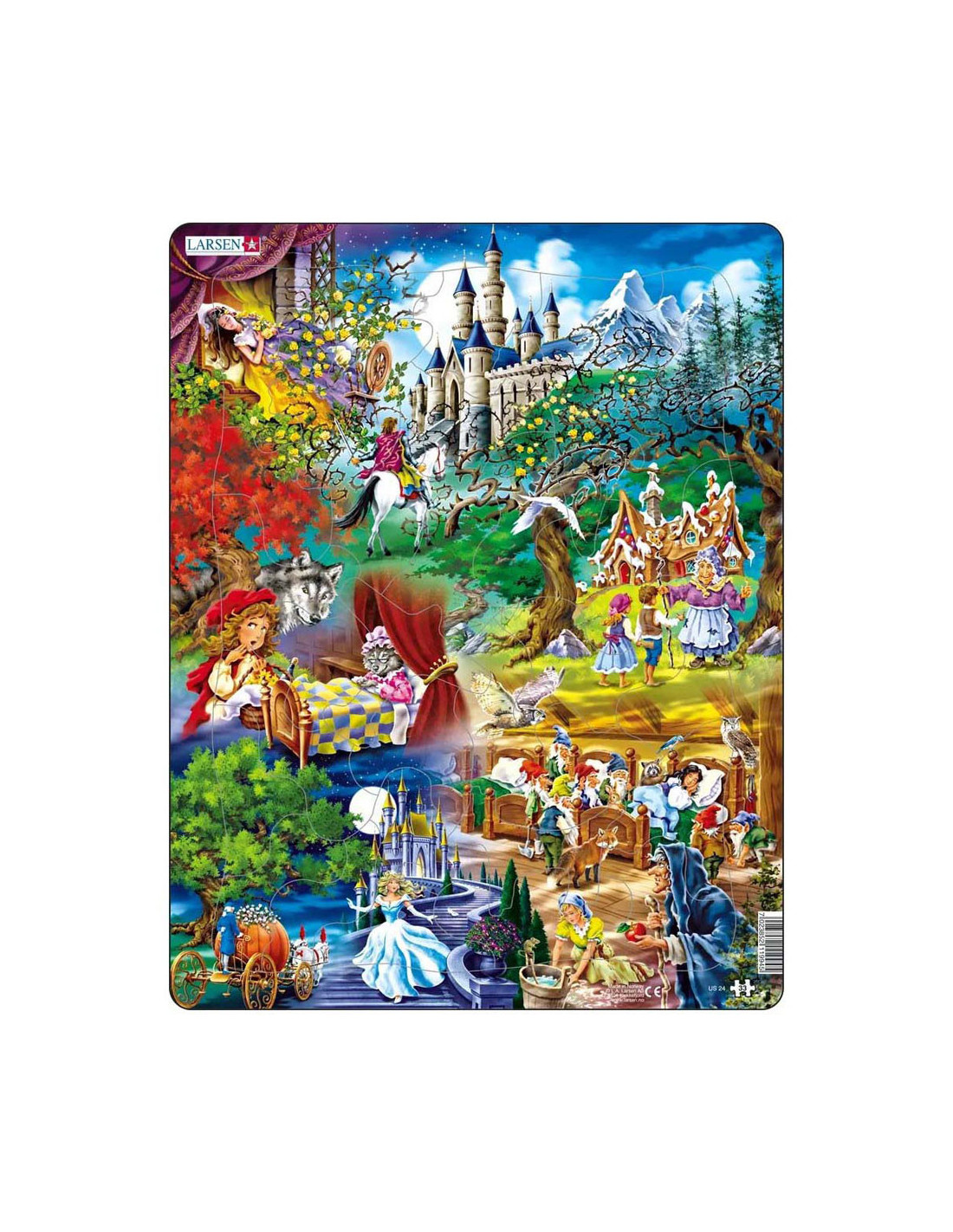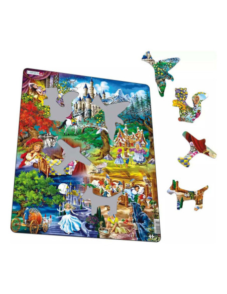 De puzzels van Larsen hebben een frame waarin de puzzelstukjes keer op keer makkelijk gelegd kunnen worden. De puzzelstukjes hebben elk een eigen unieke vorm die maar op één plek in het frame past. Doordat de totale dikte van het gerecyclede karton van de Larsen puzzels 4,4 mm dik is, gaat deze jaren mee. In het thema �??Kinderpuzzels' zijn er diverse geïllustreerde platen beschikbaar. Het bos, prinsen en prinsessen, de brandweer, het vliegveld etc. Waarom Larsen?- De jongste kinderen ontwikkelen hun motoriek met de unieke puzzelstukjes. - Ook oudere kinderen spelen en leren veel over interessante thema's. - Originele thema's moedigen de kinderen aan en helpen hen zich te concentreren. - Extra dikke en stevige puzzelstukjes. - Gemaakt in Europa van gerecycled karton.