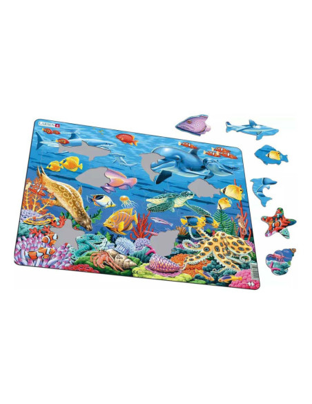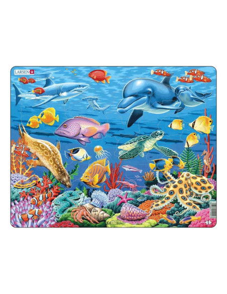 De puzzels van Larsen hebben een frame waarin de puzzelstukjes keer op keer makkelijk gelegd kunnen worden. De puzzelstukjes hebben elk een eigen unieke vorm die maar op één plek in het frame past. Doordat de totale dikte van het gerecyclede karton van de Larsen puzzels 4,4 mm dik is, gaat deze jaren mee. In het thema �??Larsen Dieren Puzzels' zijn de dieren van over de hele wereld te vinden. Leer alle dieren spelenderwijs kennen! Waarom Larsen? - De jongste kinderen ontwikkelen hun motoriek met de unieke puzzelstukjes. - Ook oudere kinderen spelen en leren veel over interessante thema's.- Originele thema's moedigen de kinderen aan en helpen hen zich te concentreren. - Extra dikke en stevige puzzelstukjes. - Gemaakt in Europa van gerecycled karton.