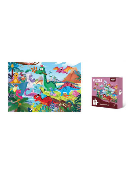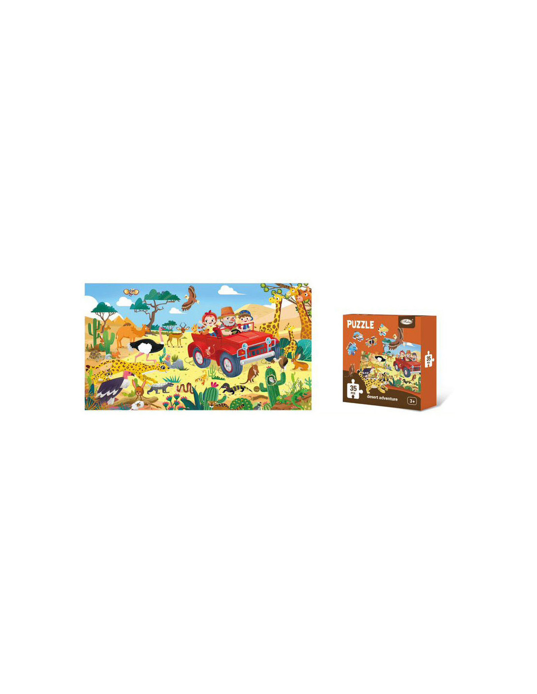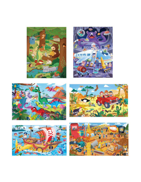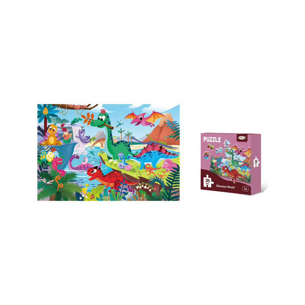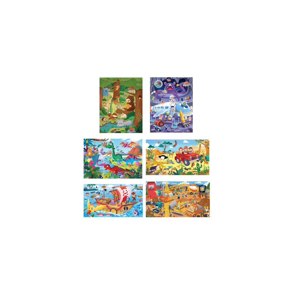 Kleurrijke puzzel van 21,4 x 15,4 centimeter groot. De puzzel heeft 35 stukjes en wordt geleverd in 6 verschillende designs: safari, bouwplaats, dino, piraat, bos en ruimteraket. Geschikt vanaf 3 jaar.