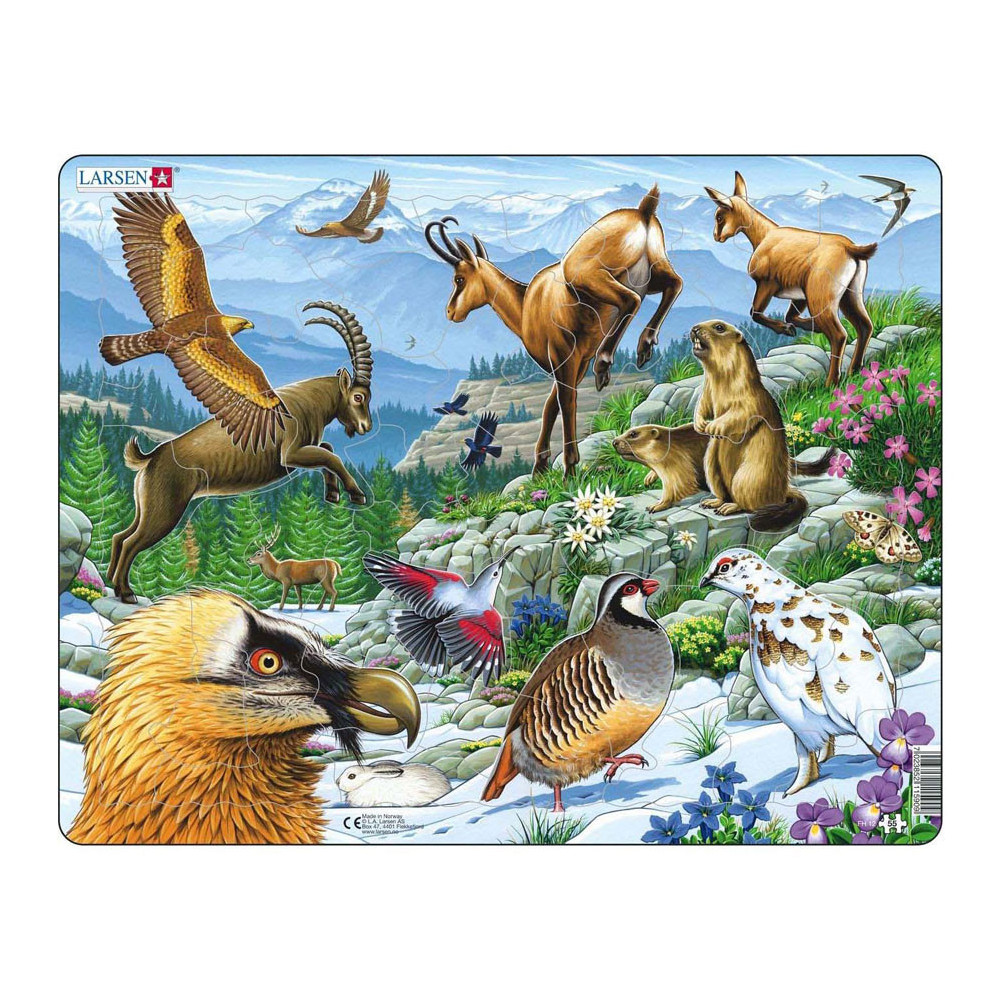 De puzzels van Larsen hebben een frame waarin de puzzelstukjes keer op keer makkelijk gelegd kunnen worden. De puzzelstukjes hebben elk een eigen unieke vorm die maar op één plek in het frame past. Doordat de totale dikte van het gerecyclede karton van de Larsen puzzels 4,4 mm dik is, gaat deze jaren mee. In het thema Larsen Dieren Puzzels' zijn de dieren van over de hele wereld te vinden. Leer alle dieren spelenderwijs kennen! Waarom Larsen? - De jongste kinderen ontwikkelen hun motoriek met de unieke puzzelstukjes.- Ook oudere kinderen spelen en leren veel over interessante thema's. - Originele thema's moedigen de kinderen aan en helpen hen zich te concentreren. - Extra dikke en stevige puzzelstukjes. - Gemaakt in Europa van gerecycled karton.