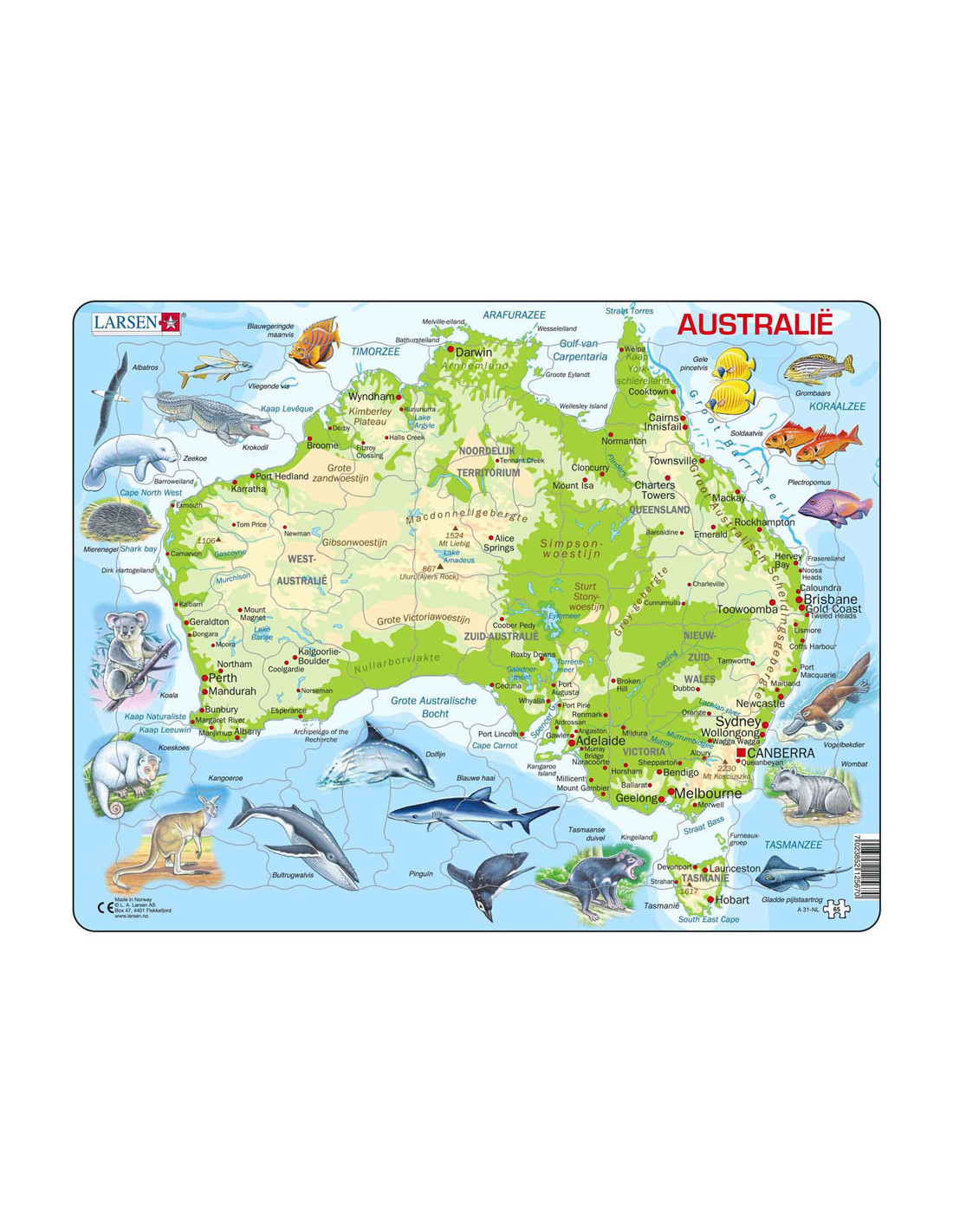 De puzzels van Larsen hebben een frame waarin de puzzelstukjes keer op keer makkelijk gelegd kunnen worden. De puzzelstukjes hebben elk een eigen unieke vorm die maar op één plek in het frame past. Doordat de totale dikte van het gerecyclede karton van de Larsen puzzels 4,4 mm dik is, gaat deze jaren mee. In het thema Larsen Land en Wereldkaarten' kun je de hele wereld, inclusief vlaggen al spelenderwijs leren. De perfecte manier om je topografie kennis naar een hoger niveau te brengen! Waarom Larsen?- De jongste kinderen ontwikkelen hun motoriek met de unieke puzzelstukjes. - Ook oudere kinderen spelen en leren veel over interessante thema's. - Originele thema's moedigen de kinderen aan en helpen hen zich te concentreren.- Extra dikke en stevige puzzelstukjes. - Gemaakt in Europa van gerecycled karton.