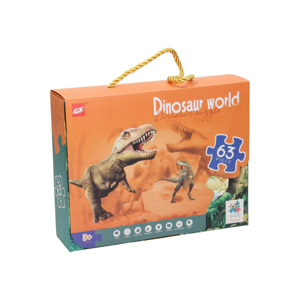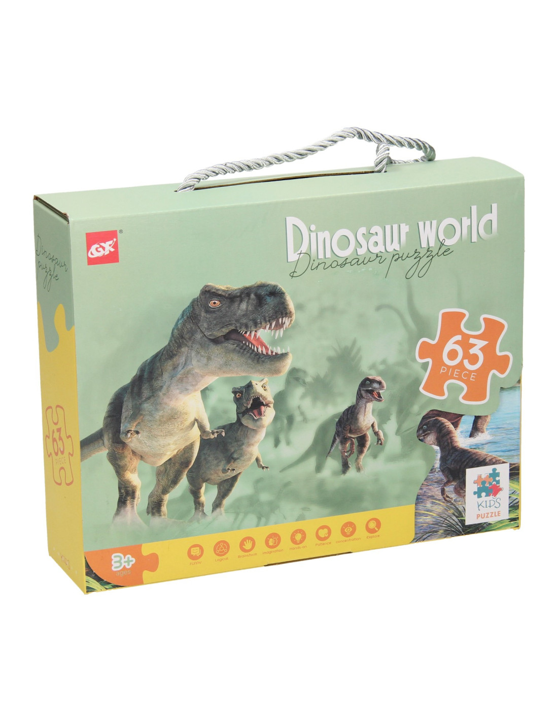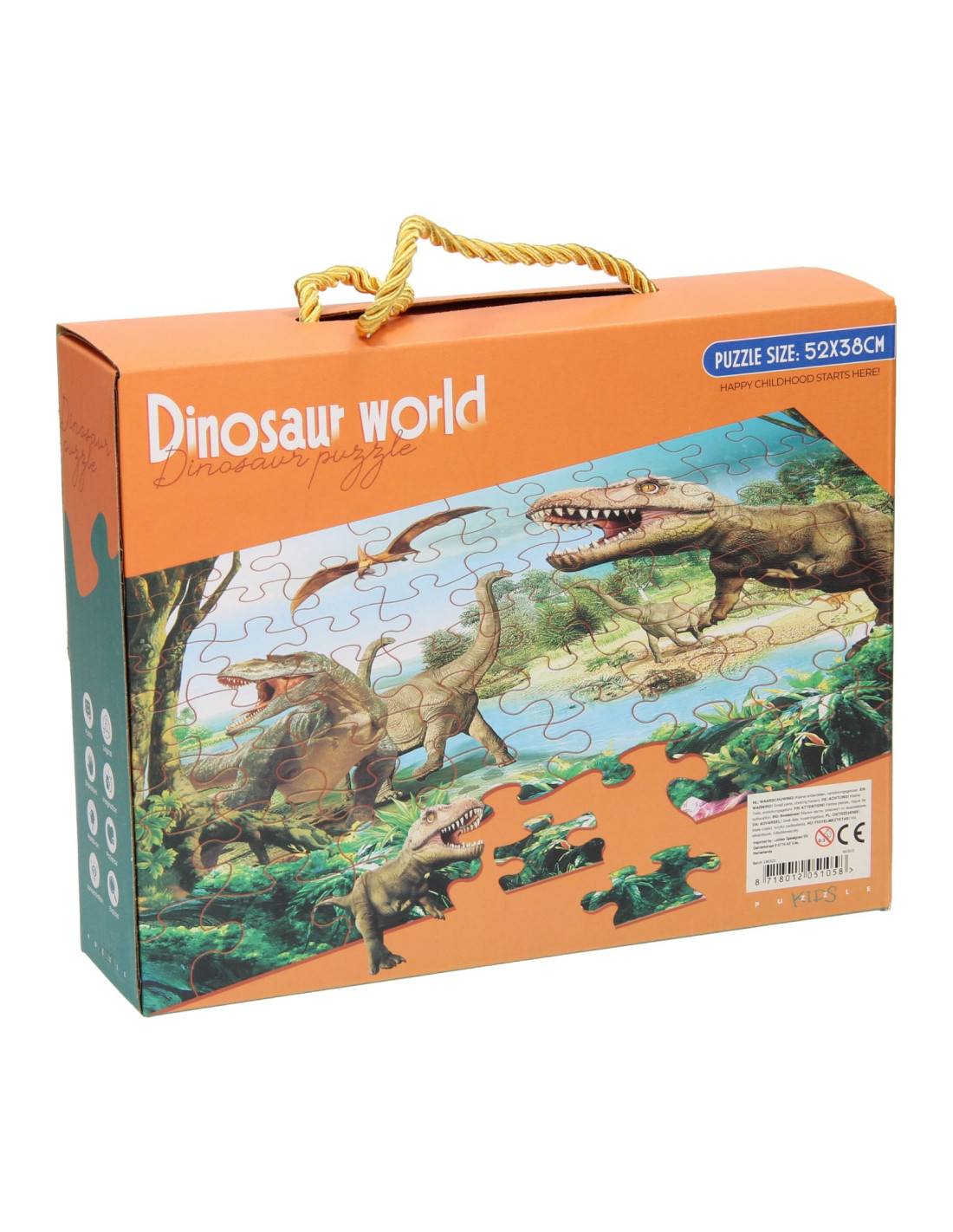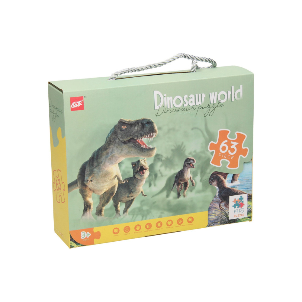 Legpuzzel met coole dinoprint van 63 stukjes groot. Gelegd is de puzzel 52 x 38 centimeter. Geschikt voor kinderen vanaf 3 jaar.
