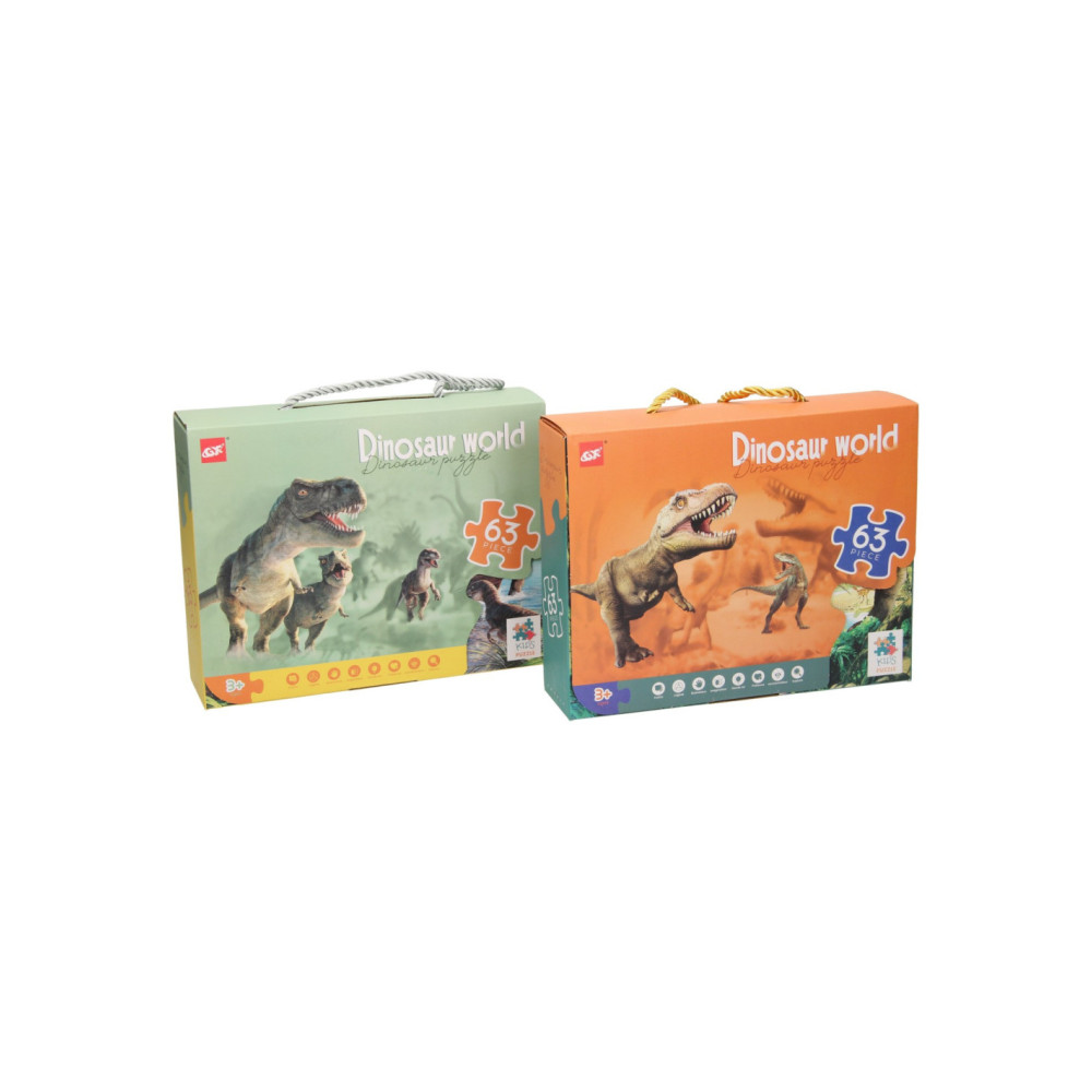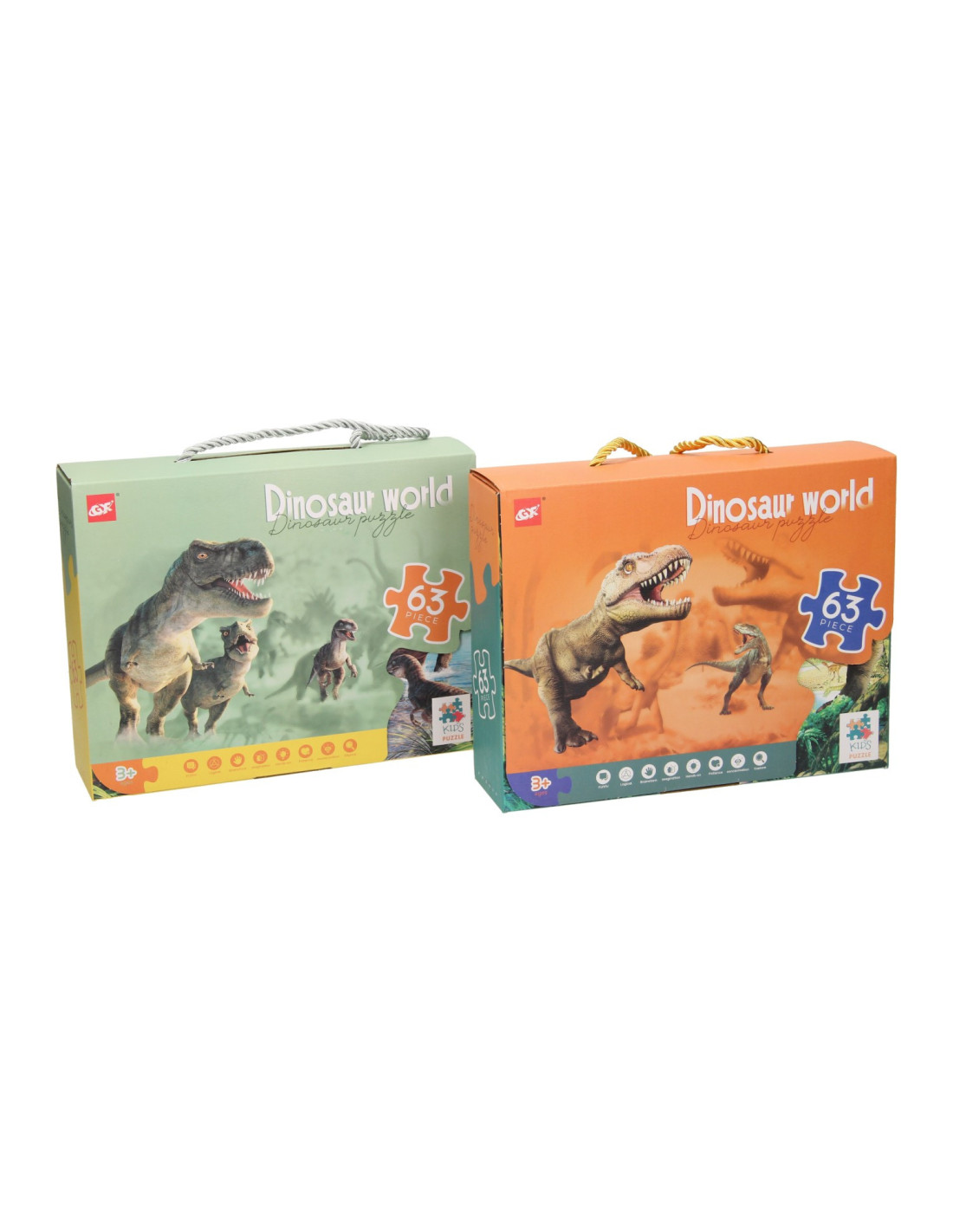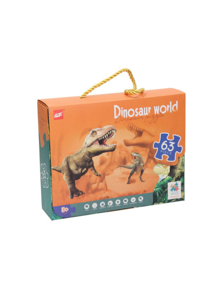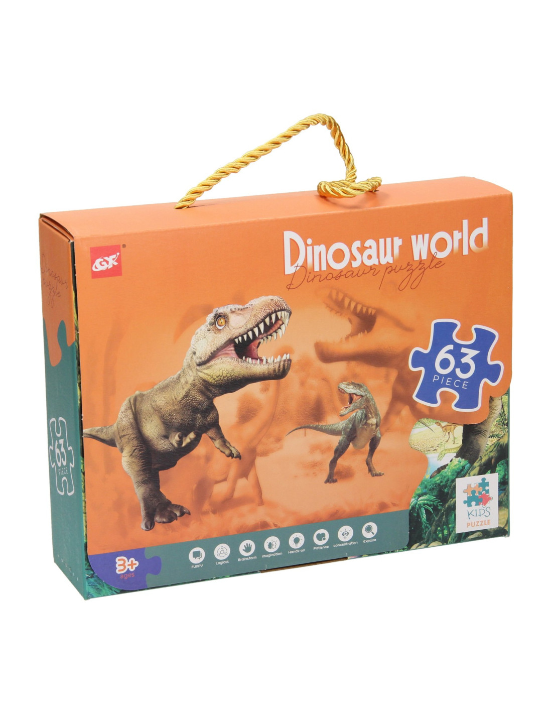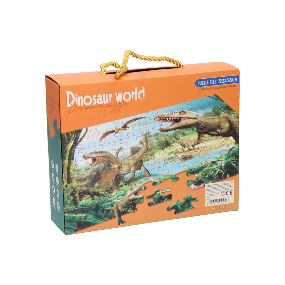 Legpuzzel met coole dinoprint van 63 stukjes groot. Gelegd is de puzzel 52 x 38 centimeter. Geschikt voor kinderen vanaf 3 jaar.