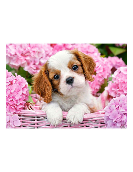 Castorland Pup in pink flowers (500 stukjes) - Puzzel - Afmeting:33x47cm Voor de echte puzzelaars is er Castorland. Dit puzzelmerk produceert al sinds 1989 puzzels voor zowel beginners als echte fanatiekelingen. Het assortiment varieert van puzzels met 12 stukjes voor de kleine puzzelaar tot 4000 stukjes voor de ervaren puzzelfans. De prachtige illustraties op de puzzels van Castorland brengen je in een ware droomwereld. Stukje voor stukje leg jij je Engelse cottage of mysterieuze berglandschap aan elkaar. Voor de jonge puzzelaar heeft Castorland vrolijke vloerpuzzels met sprookjesfiguren en boerderijdieren. Puzzelen kan erg ontspannend zijn na een drukke dag op het werk of gezellig samen met je partner, Children of familie. De puzzels zitten in een stevige doos en zijn daarom gemakkelijk op te bergen of mee te nemen tijdens een weekendje weg. Zet de televisie eens uit en kies voor een puzzel van Castorland.