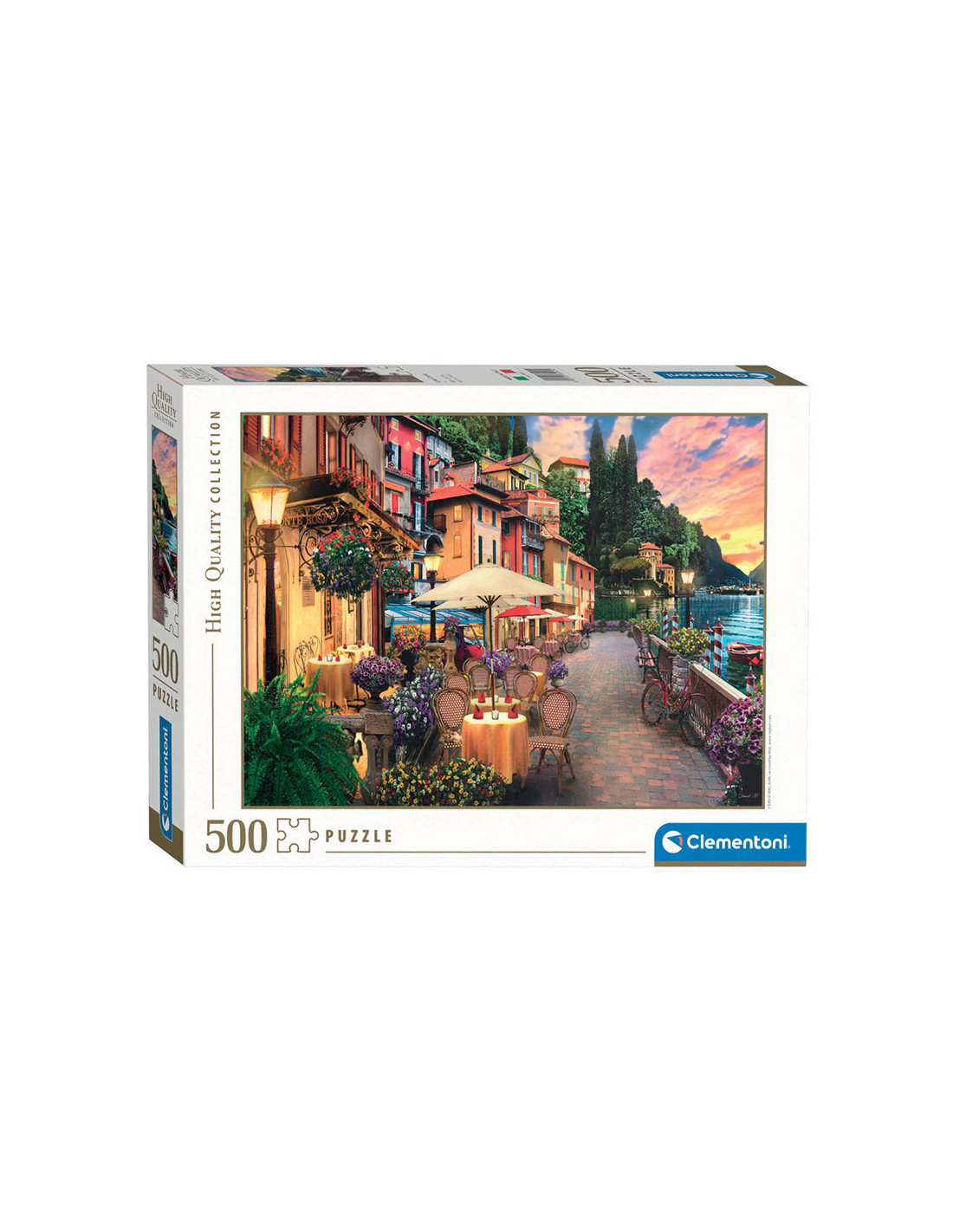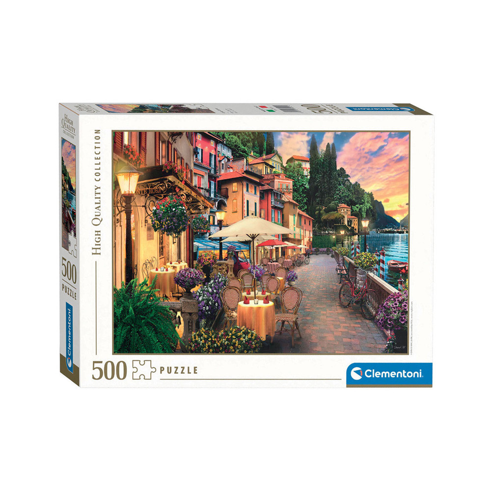 Puzzel van 500 stukjes met een prachtige afbeelding van een dorpje aan het Comomeer in Italië. Gelegd is de puzzel 36 x 49 centimeter groot. Clementoni gebruikt ecologisch verantwoordelijk, gerecyclede materialen om daarmee vervuilende componenten te vermijden. Gemaakt in Italië.