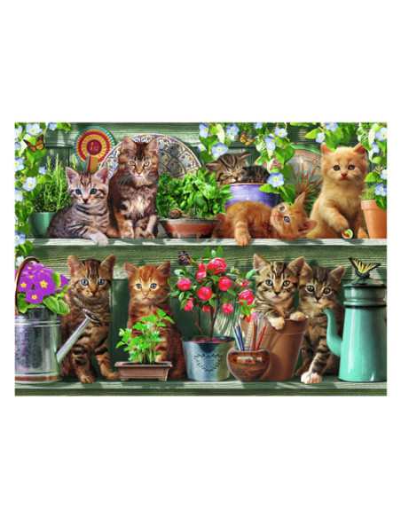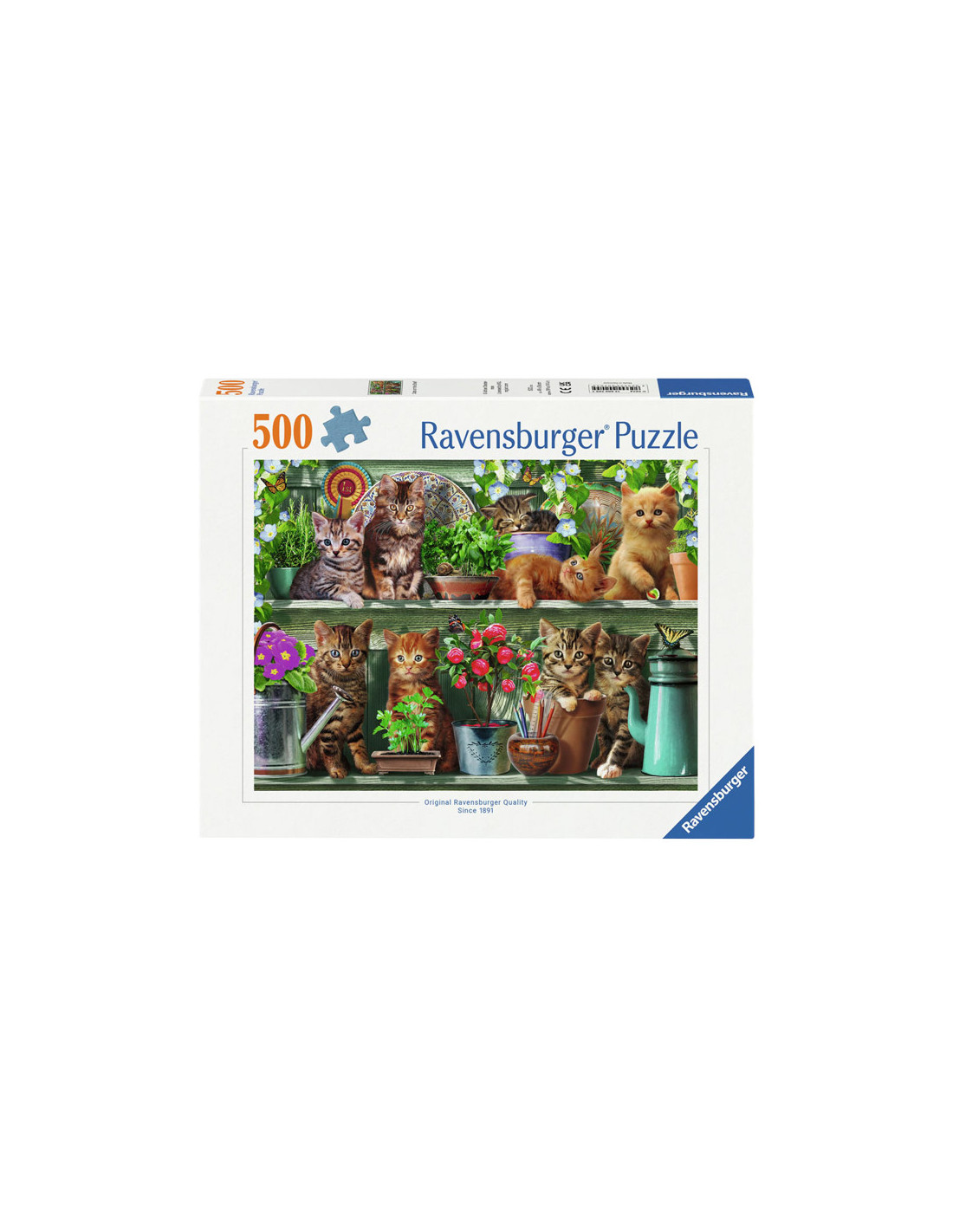 Ontsnap uit de realiteit en stap in de wereld van Ravensburger puzzels. Deze Ravensburger puzzel van 1000 stukjes is geschikt voor zowel beginnende als ervaren puzzelaars. En omdat onze geliefde puzzels een standaard formaat hebben, kun je het resultaat inlijsten en ophangen. Dankzij de met de hand gemaakte stansmessen is de vormvariatie van de stukjes oneindig. Jong en oud zullen genieten van deze Katjes in het rek puzzel met 500 stukjes.