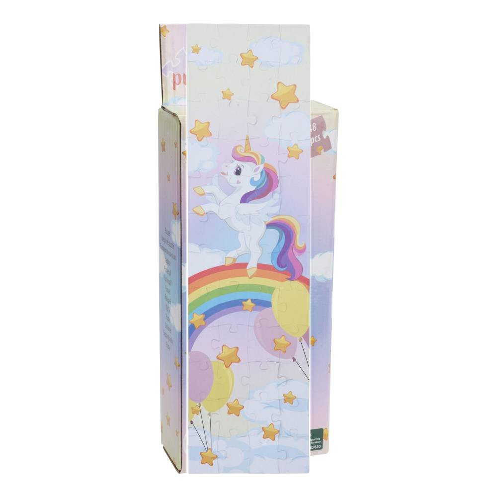 Deze leuke eenhoorn puzzel van 48 stukjes is perfect voor jonge ontdekkers! Gemaakt van stevig FSC-gecertificeerd karton. De heldere, kleurrijke afbeelding van een eenhoorn maakt het puzzelen extra spannend en aantrekkelijk voor kinderen. Met 48 stukjes biedt de puzzel een leuke uitdaging voor kinderen vanaf 4 jaar, terwijl het hun probleemoplossend vermogen en fijne motoriek helpt ontwikkelen.