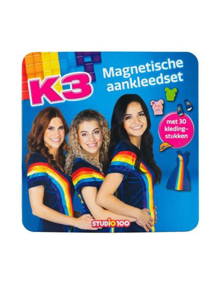 Magnetisch aankleedspel van K3, met 30 kledingstukken. Geschikt voor kinderen van 4 tot 6 jaar oud.