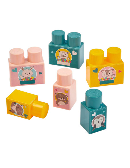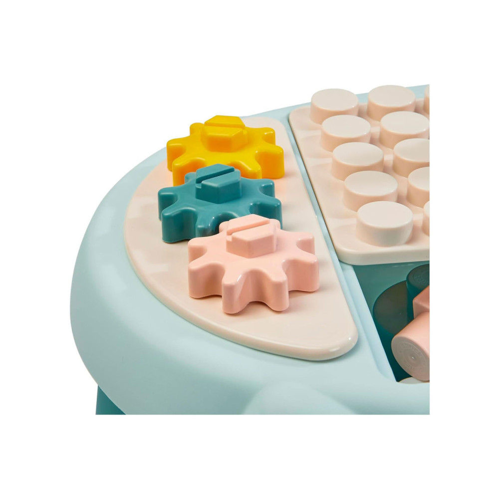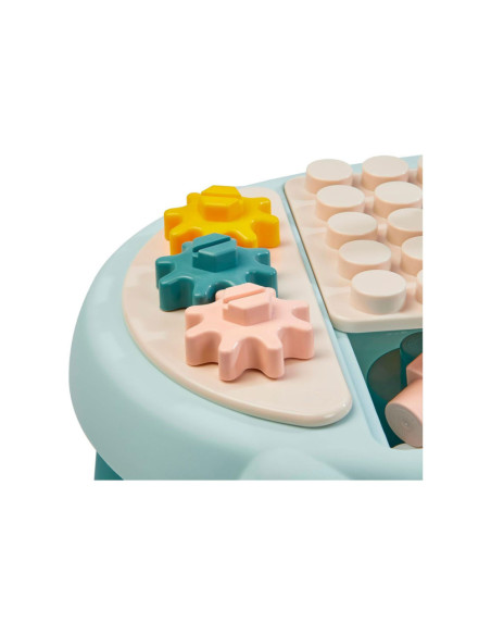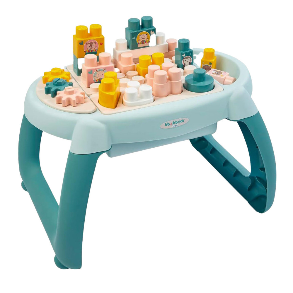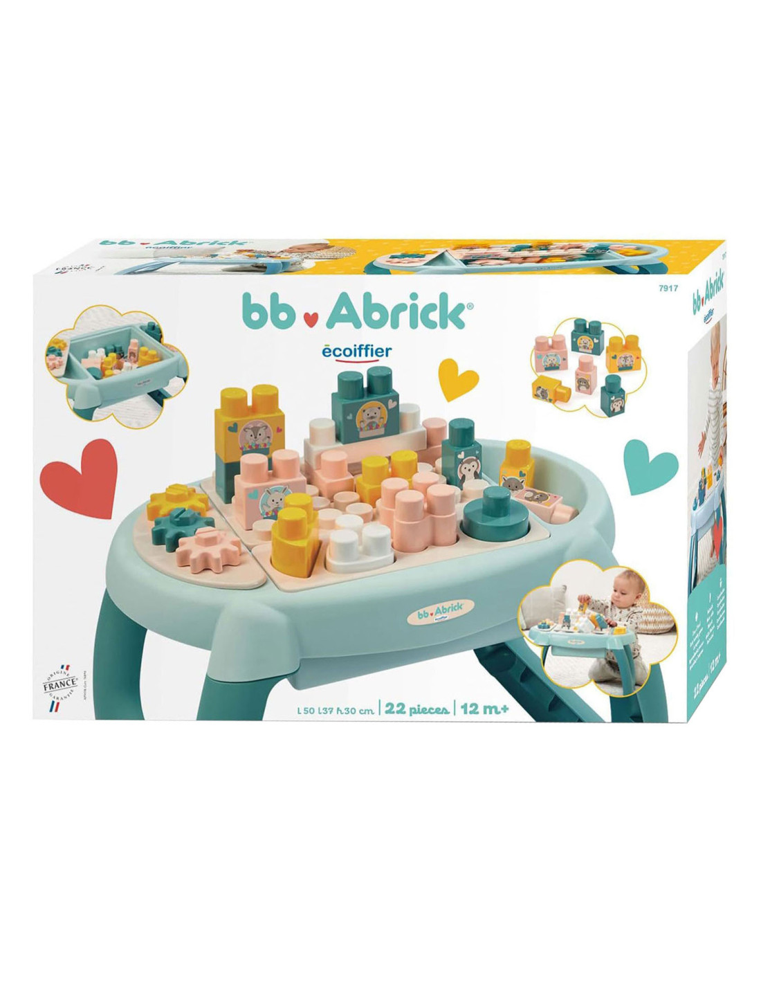Ecoiffier activiteitentafel in pastelkleuren, met 15 kunststof bouwblokken in 4 verschillende vormen. Voor bouwen, sorteren en spelen. Afmetingen (gemonteerd): 50 x 37 x 30 centimeter. Geschikt vanaf 12 maanden.