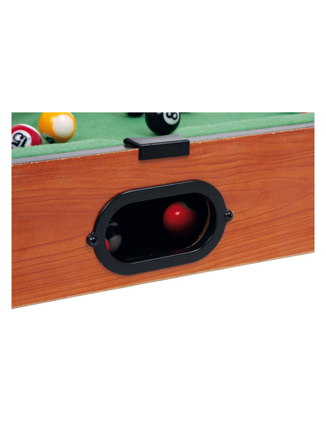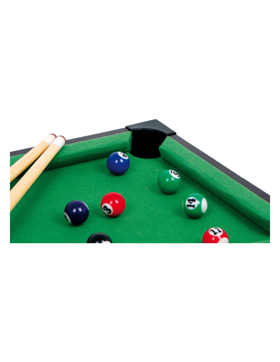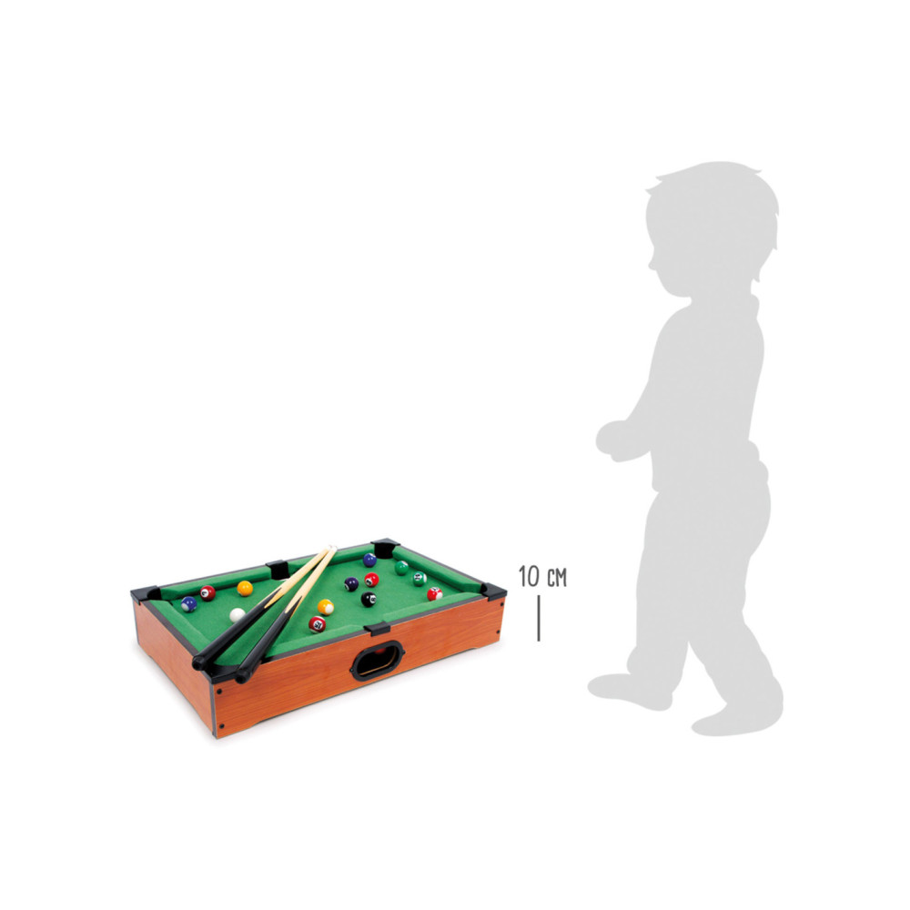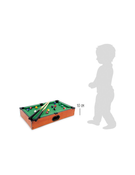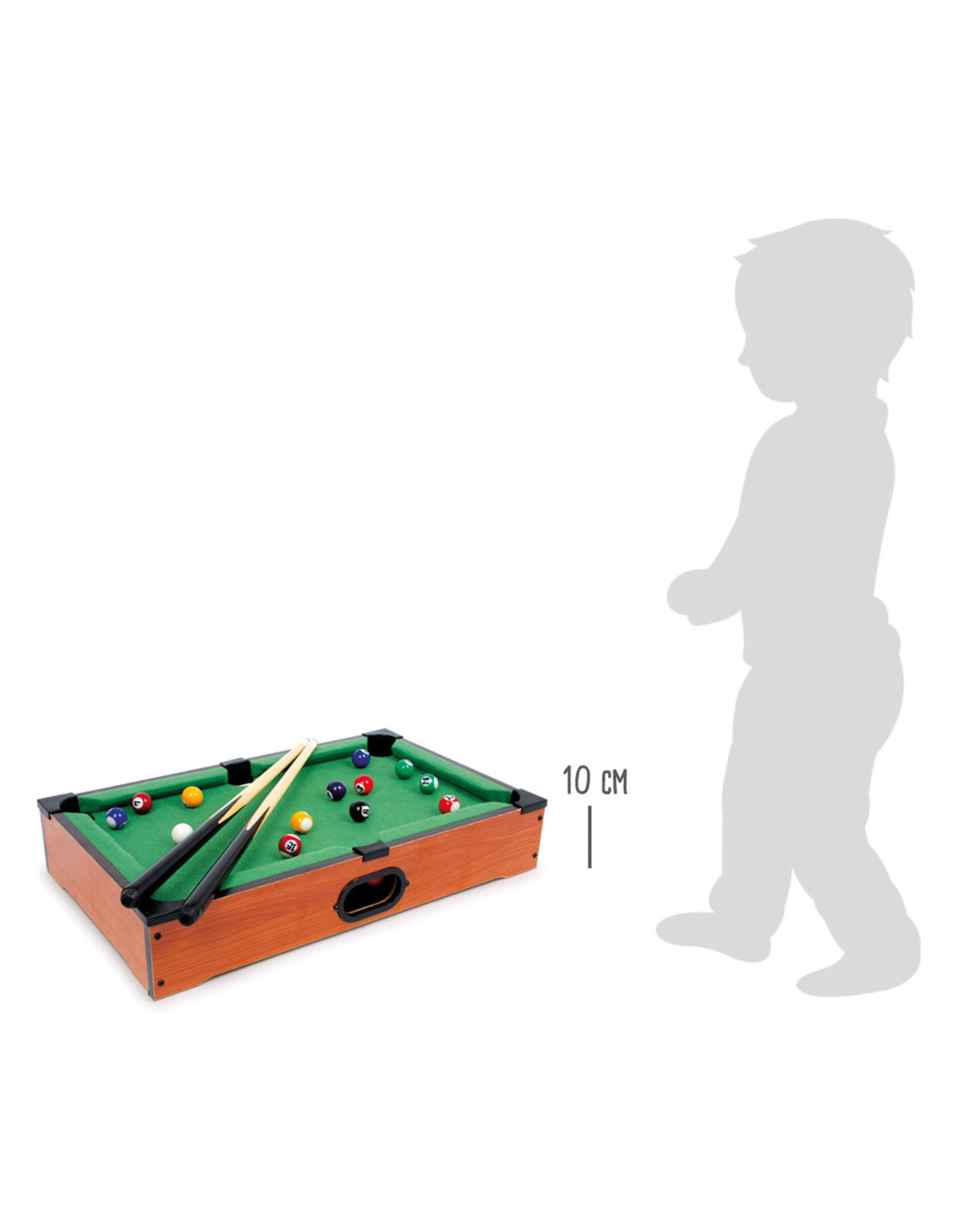 Een goede en speelse training van de fijne motoriek en de oog-handcoördinatie is deze kleine pooltafel! Inclusief 2 keuen, ballen, triangel en krijt. Spannende spellen zijn gegarandeerd.