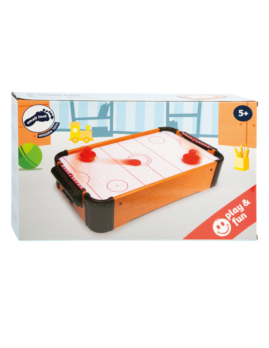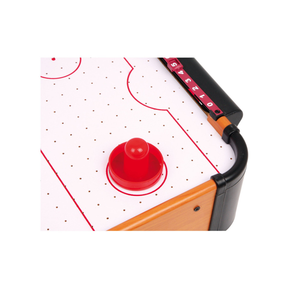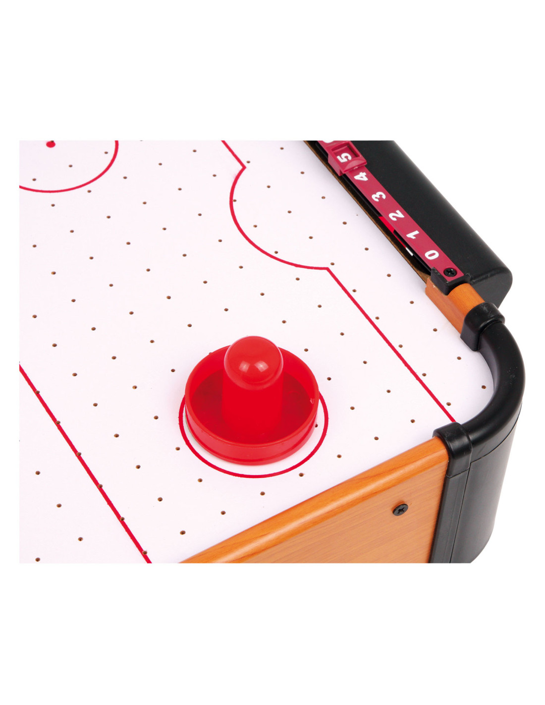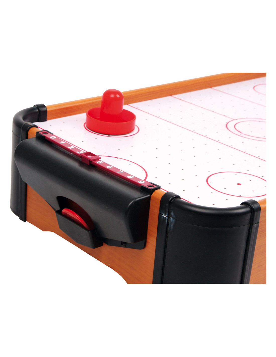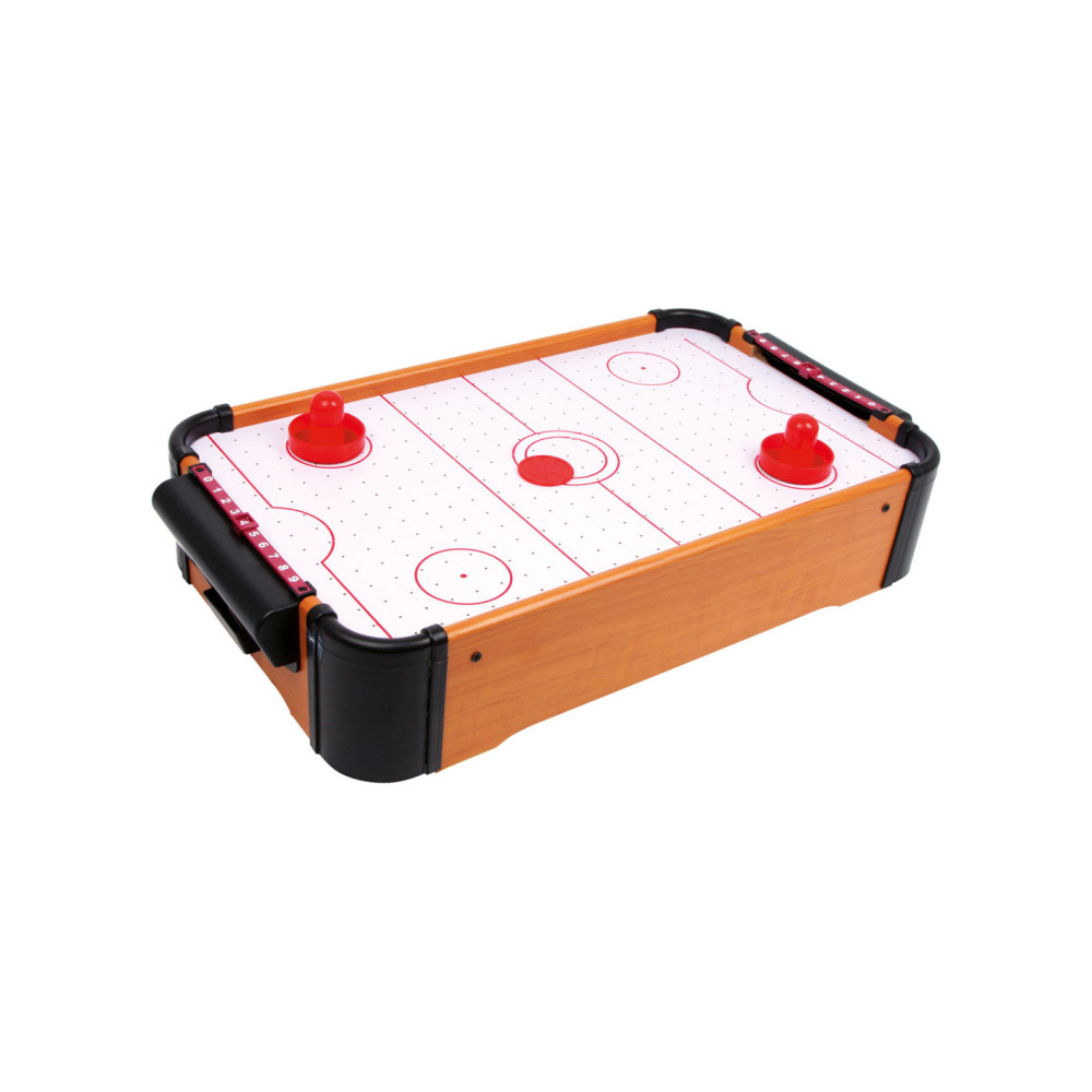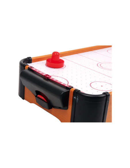 Deze airhockeytafel staat garant voor snelle games in een kleine ruimte! Een ventilator die werkt op acht AA-batterijen geeft de pucks een lift, waardoor ze over het veld kunnen zoemen! Dit spel traint de motoriek en oog-handcoördinatie perfect en fijn. Batterijen niet inbegrepen. Dit airhockeyveld kan op elke tafel worden gebouwd en na de wedstrijd weer in de speelgoedkast worden geplaatst om ruimte te besparen. Een geweldig spel voor spannende competitie voor twee!