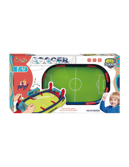 Tafelgame voetbal. Een voetbaltafel in het klein, met flippers in plaats van spelers. Inclusief scorebord en 3 mini voetballen.