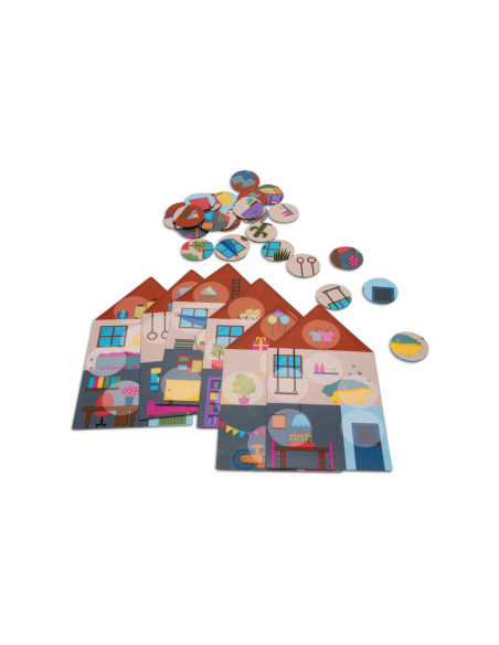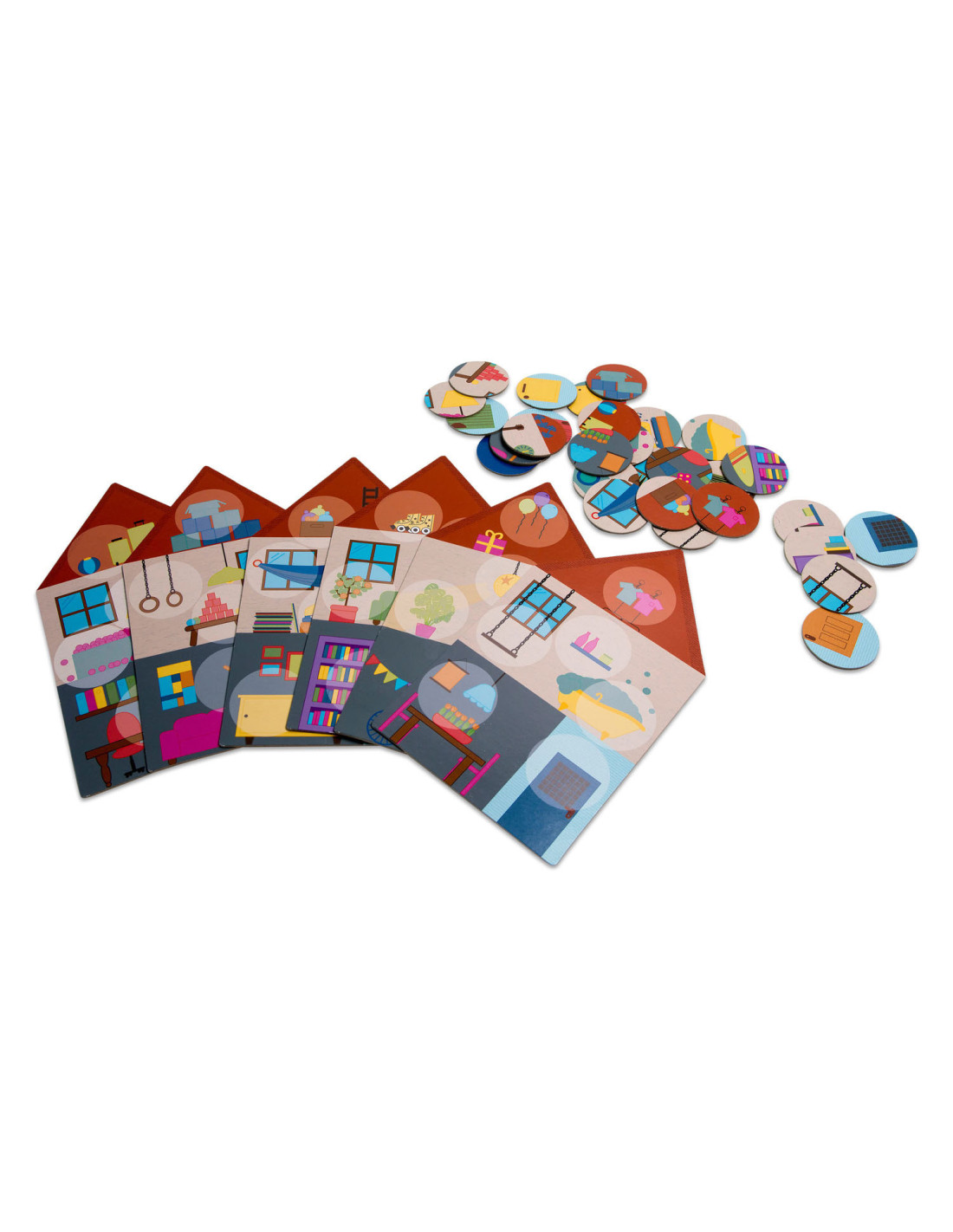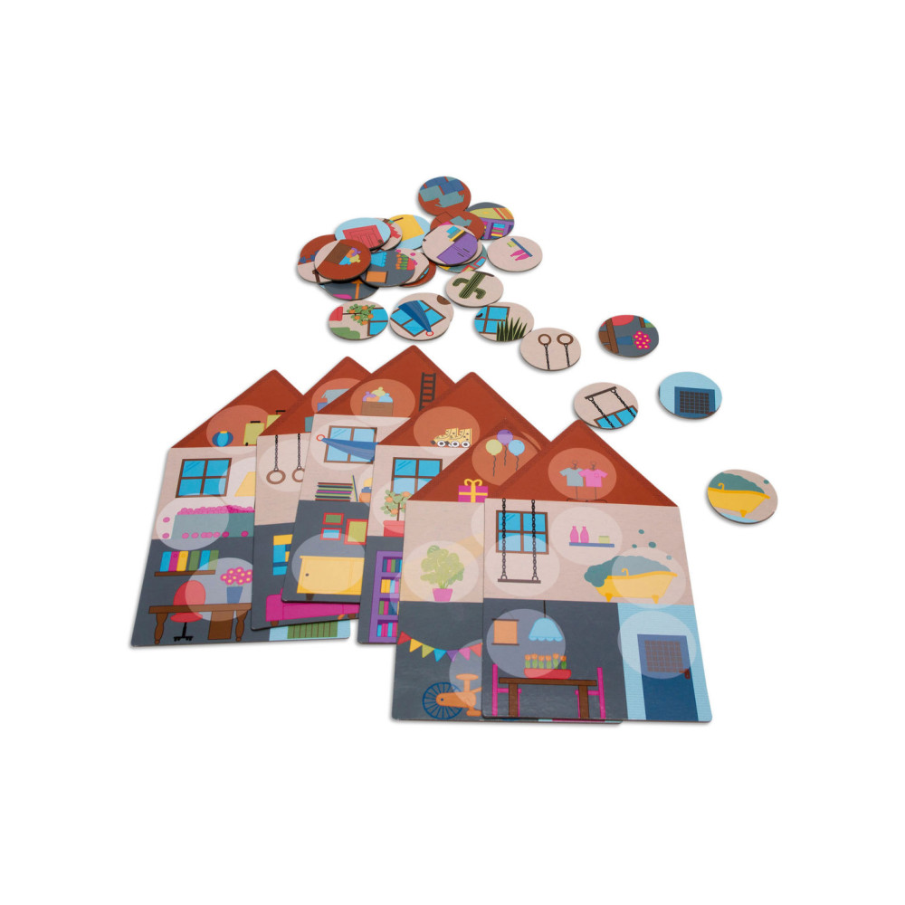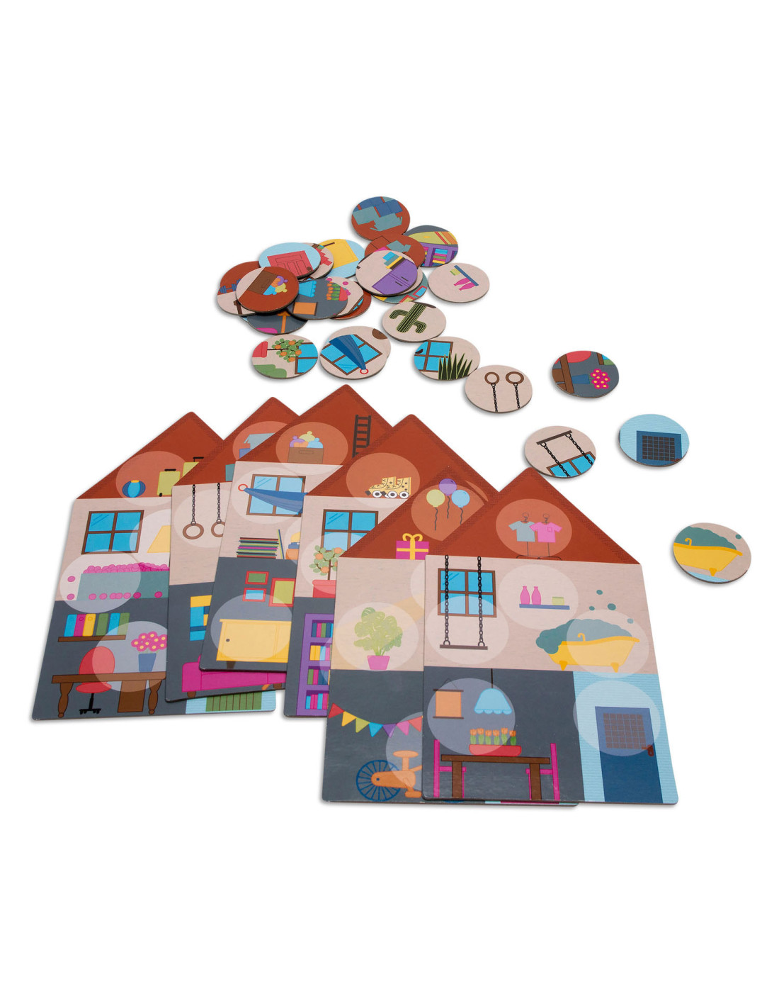 Match de fiches met alle leuke items in de zes droomhuizen. Trek om de beurt een fiche en maak als eerste jouw huis compleet.
