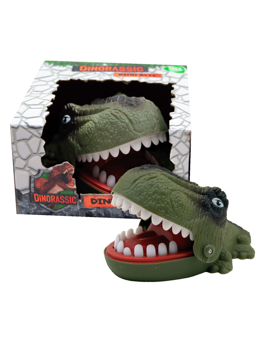 Het spel test je reflexen en behendigheid, omdat je snel moet reageren om je hand op tijd terug te trekken voordat de dino je "bijt". Met afmetingen van 16 x 9 centimeter is het spel compact en geschikt voor kinderen vanaf 3 jaar oud. Bovendien wordt het spel geleverd in verschillende uitvoeringen en kleuren, wat elke speelsessie uniek maakt.