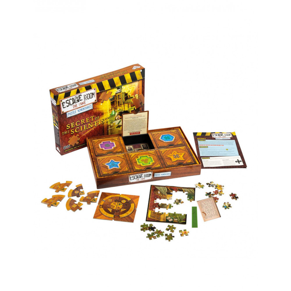 Spelregels, Puzzel Decoder, 12 Sleutelstukken, 10 Hintmunten, 2 ‘Onderdelen voor later’, 6 vakjes met puzzelstukjes en diverse spelmaterialen