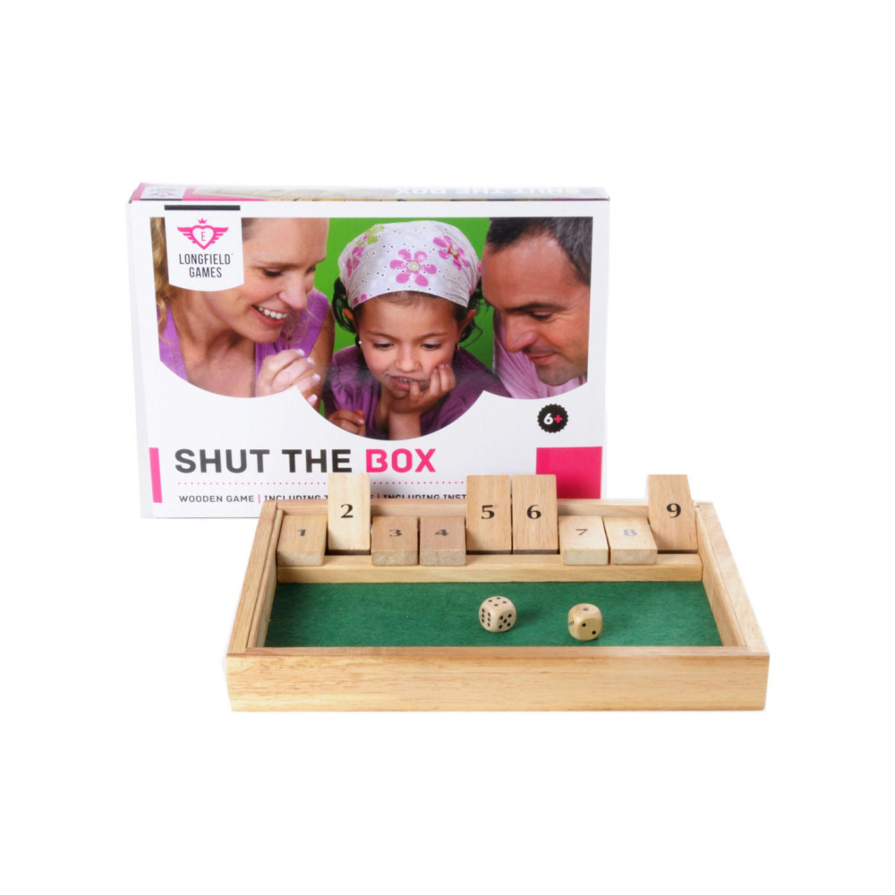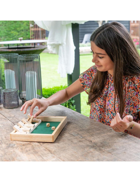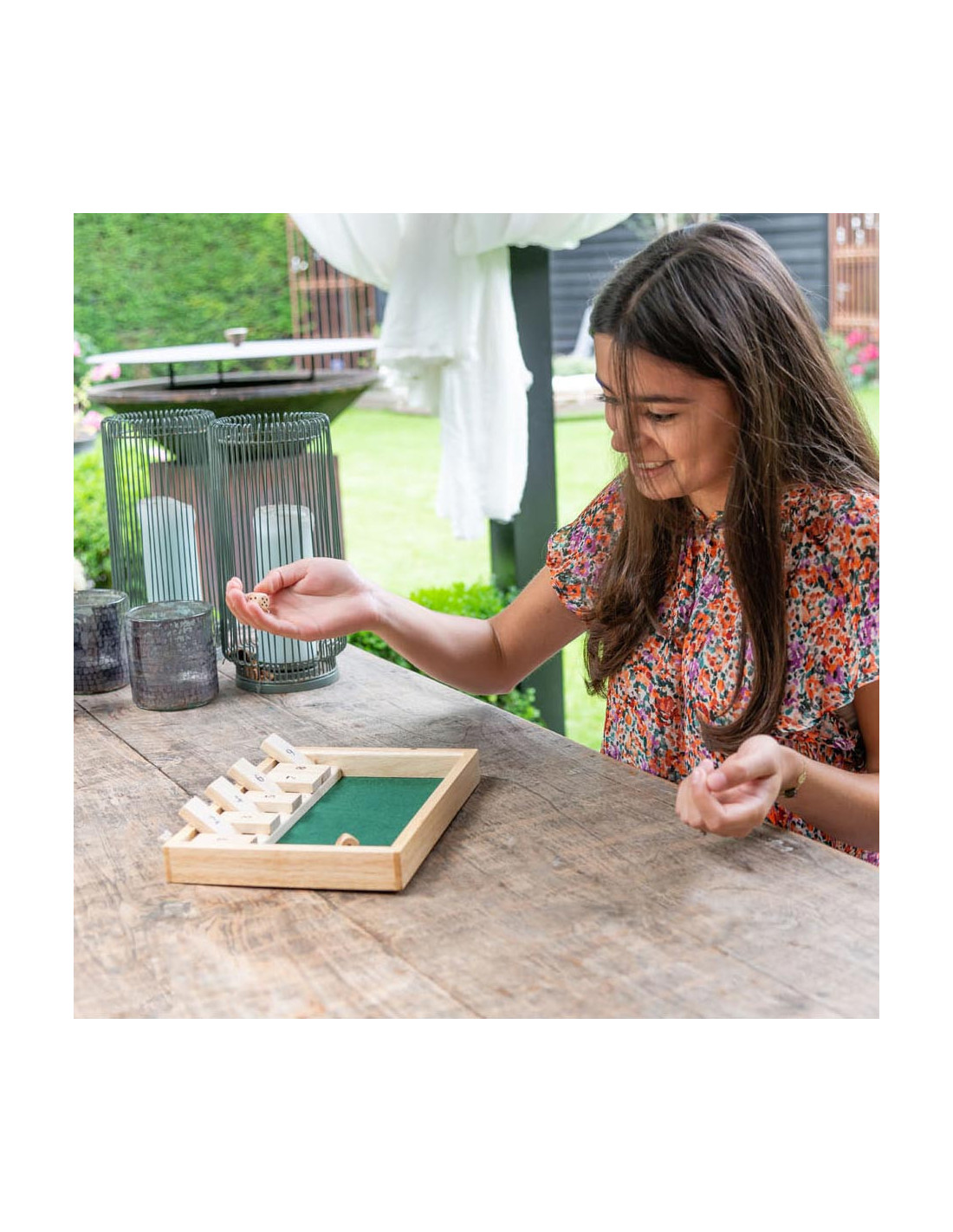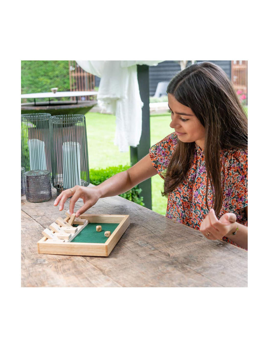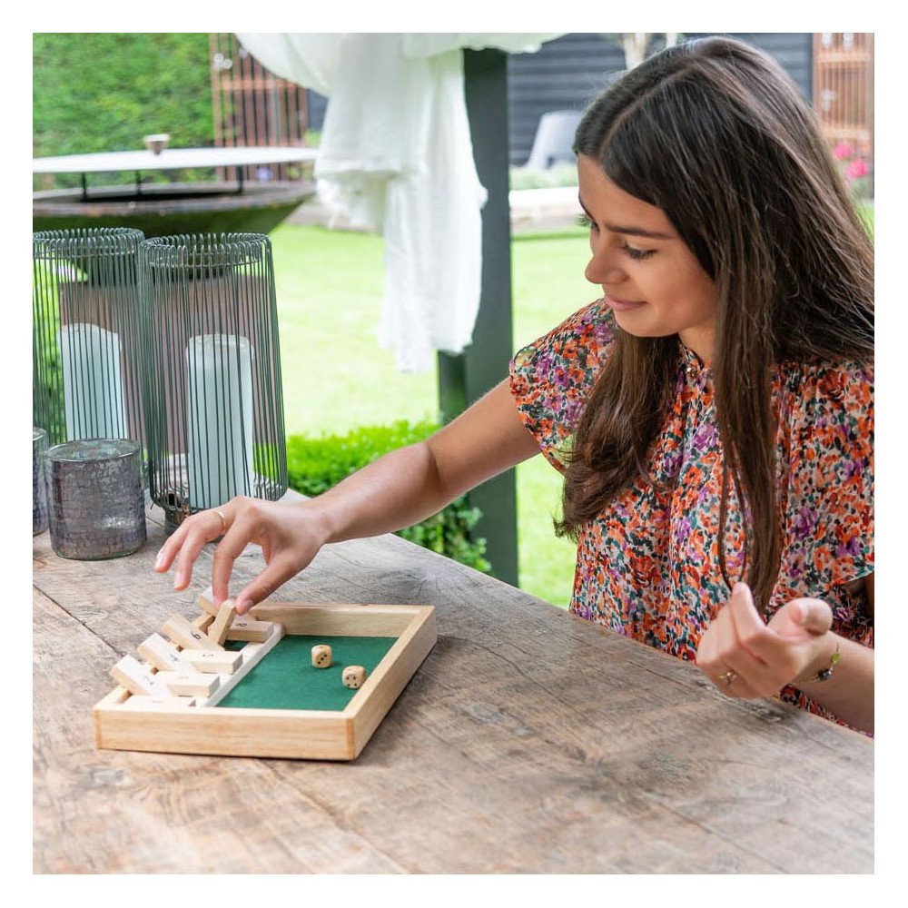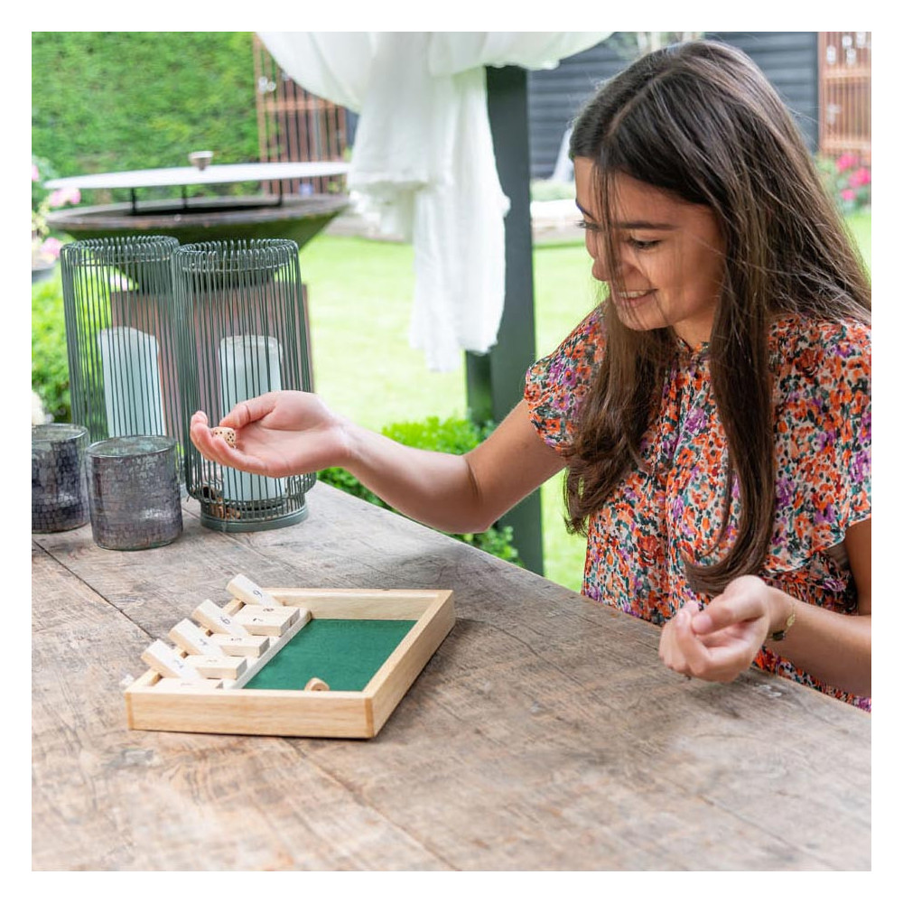 Houten shut the box spel, 28 cm bij 20 cm bij 4,5 cm.