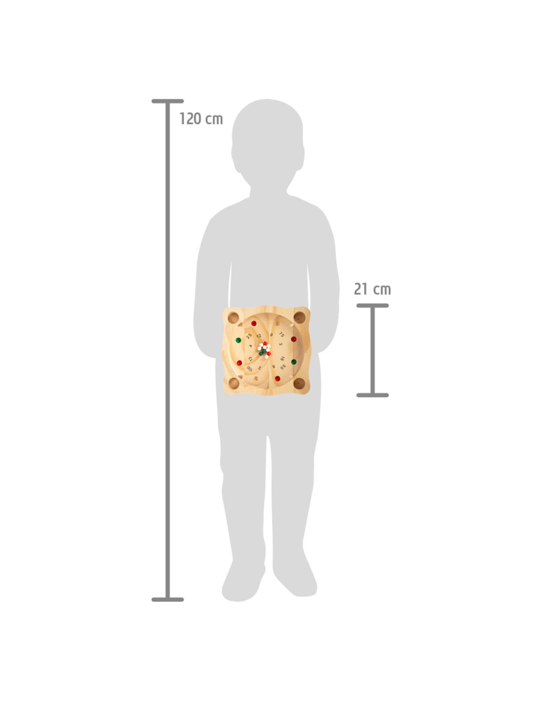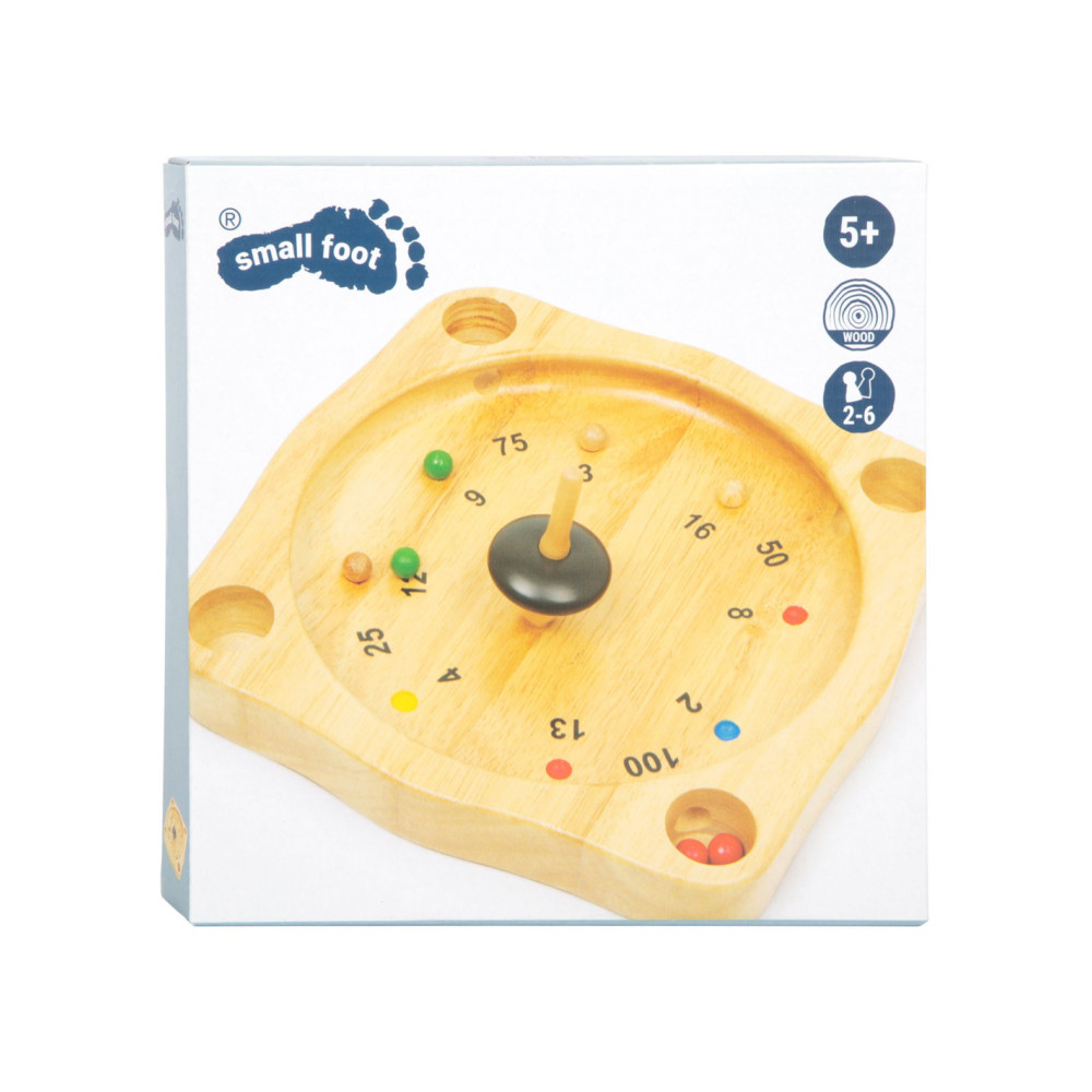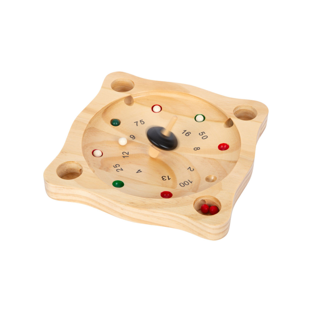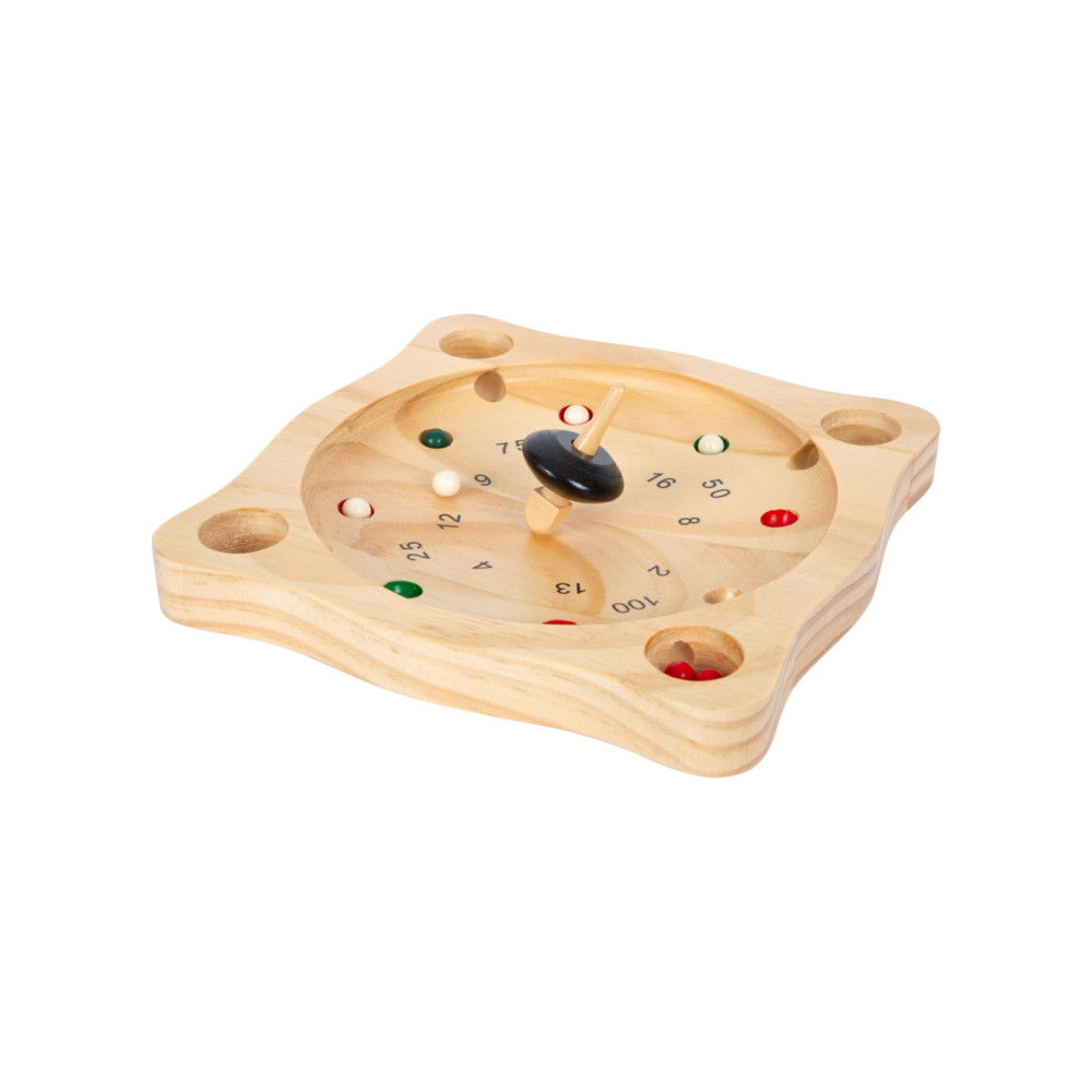 Het idee van dit innovatieve spel is om zoveel mogelijk punten te scoren door de houten ballen met een tol te laten zinken. Goede instincten en vaardigheden zijn vereist!