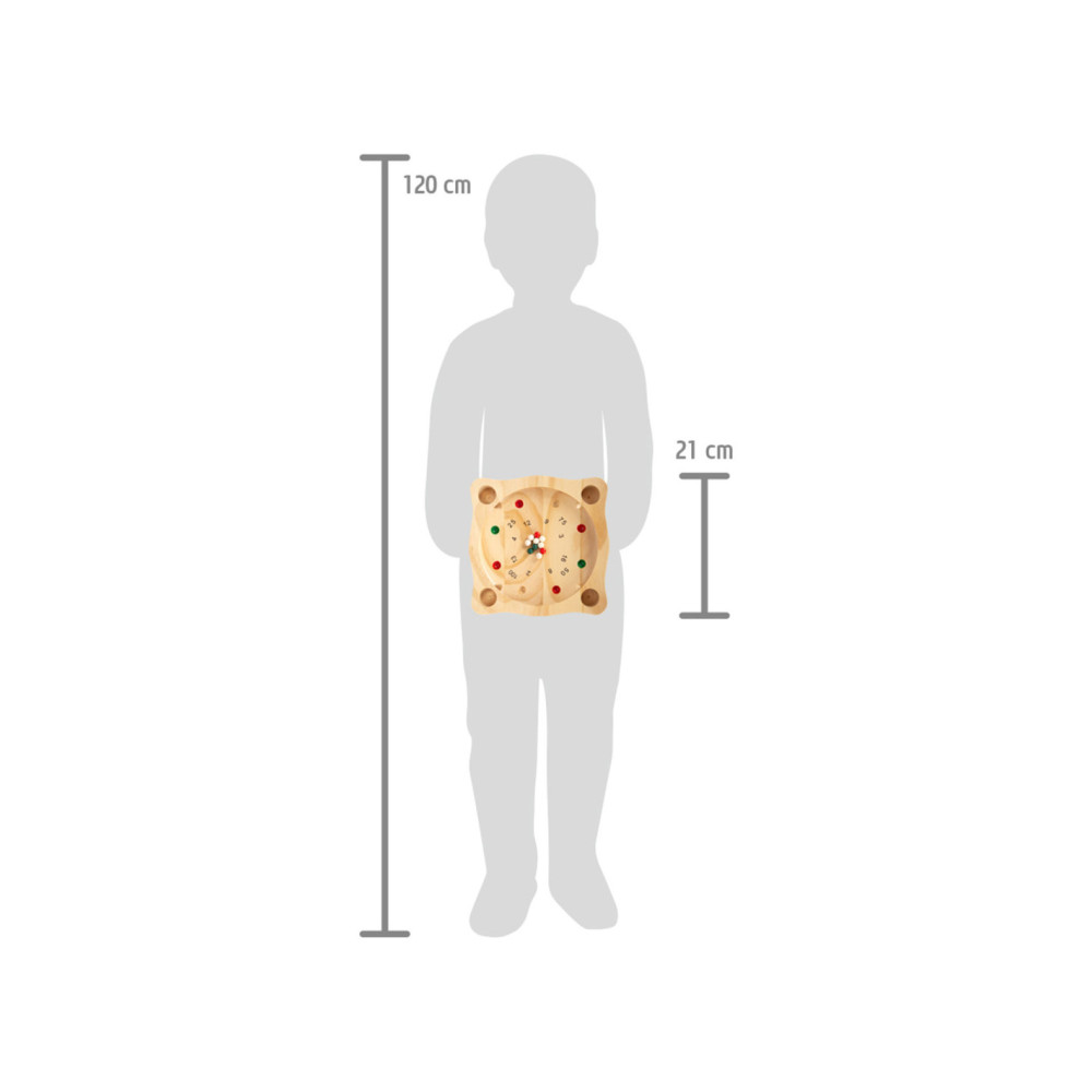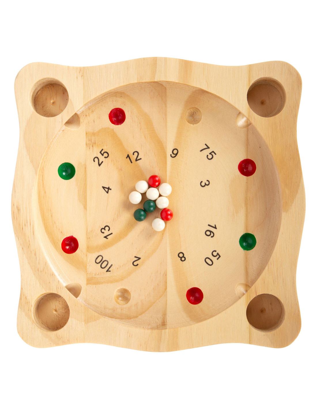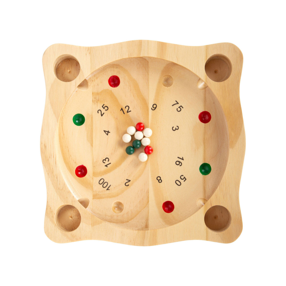 Het idee van dit innovatieve spel is om zoveel mogelijk punten te scoren door de houten ballen met een tol te laten zinken. Goede instincten en vaardigheden zijn vereist!