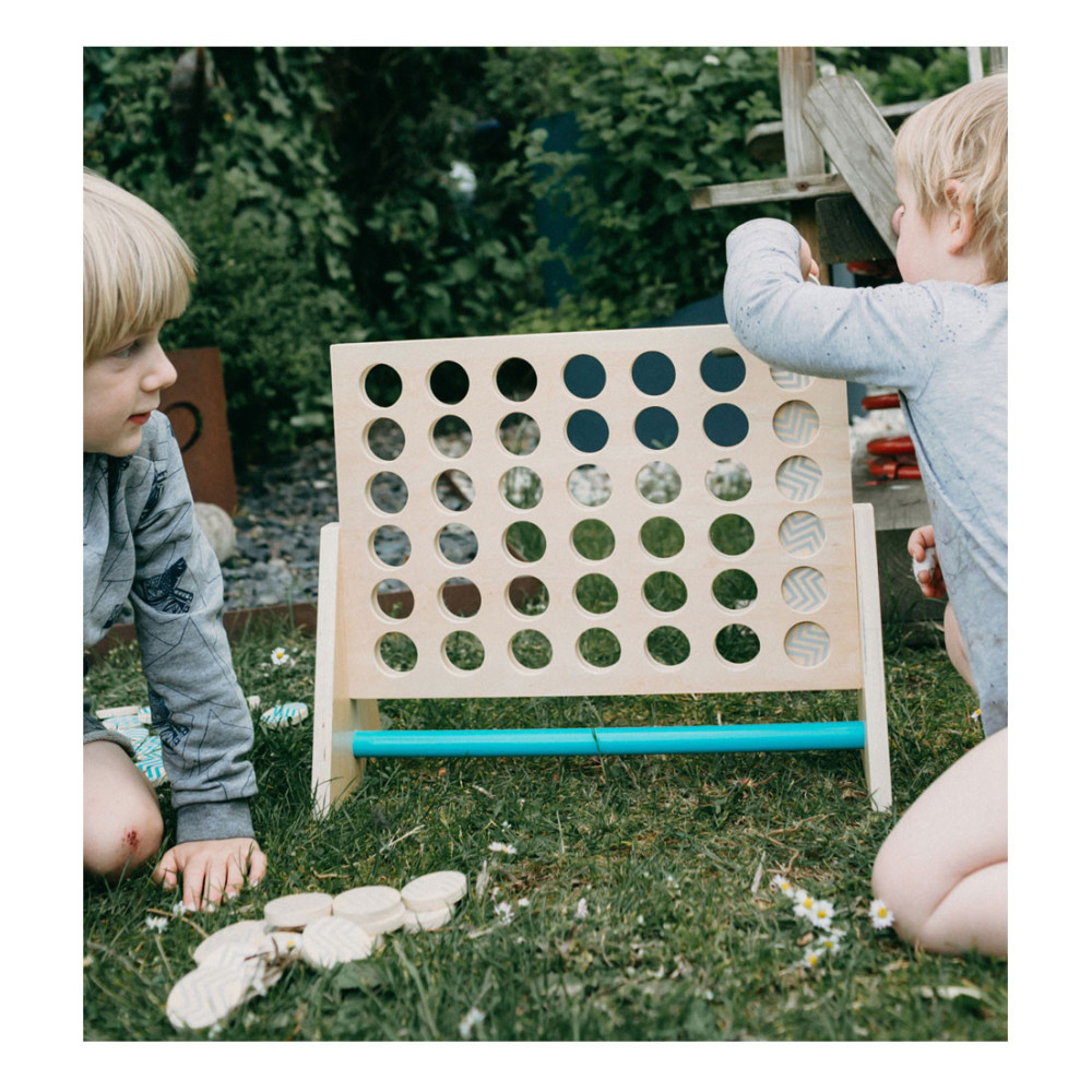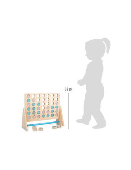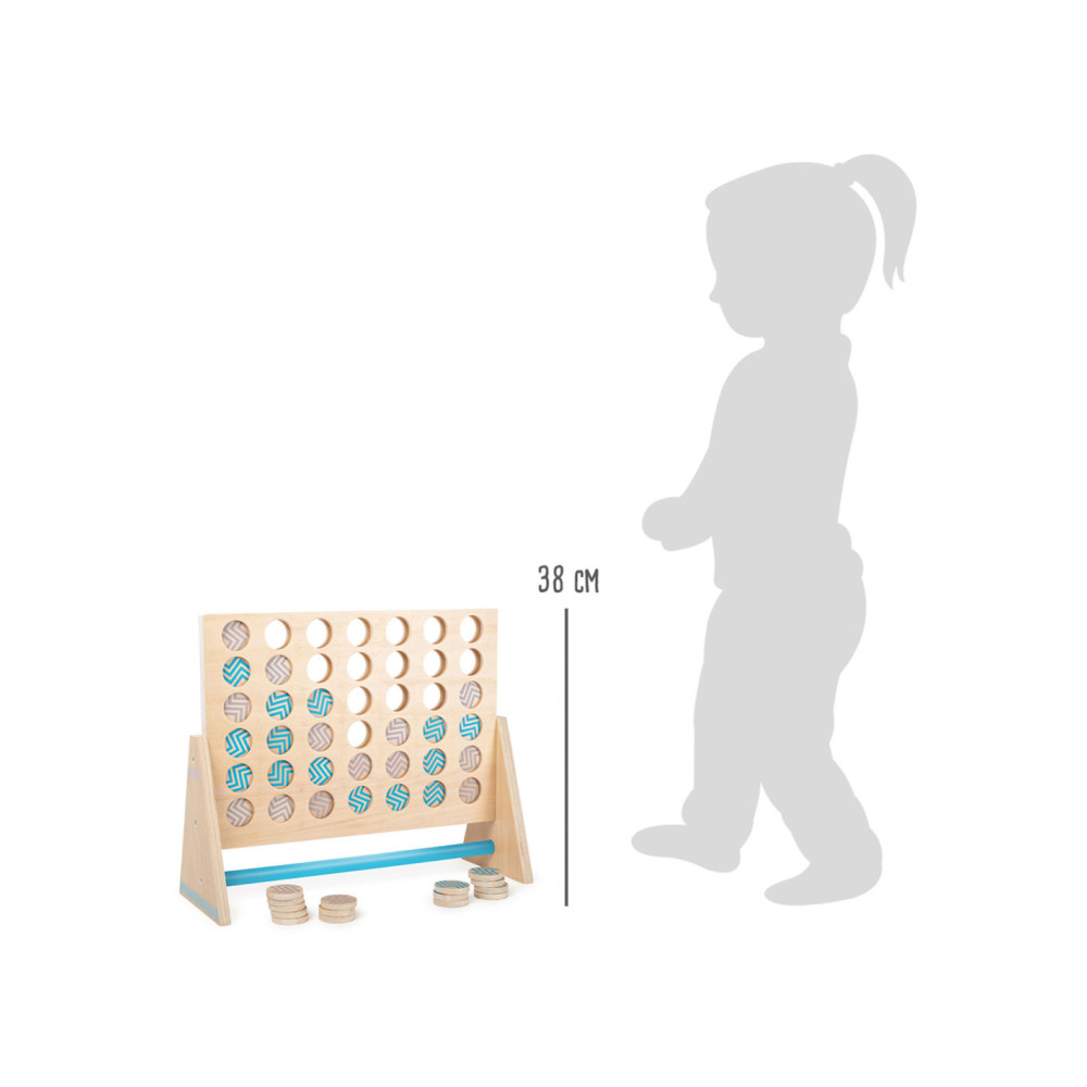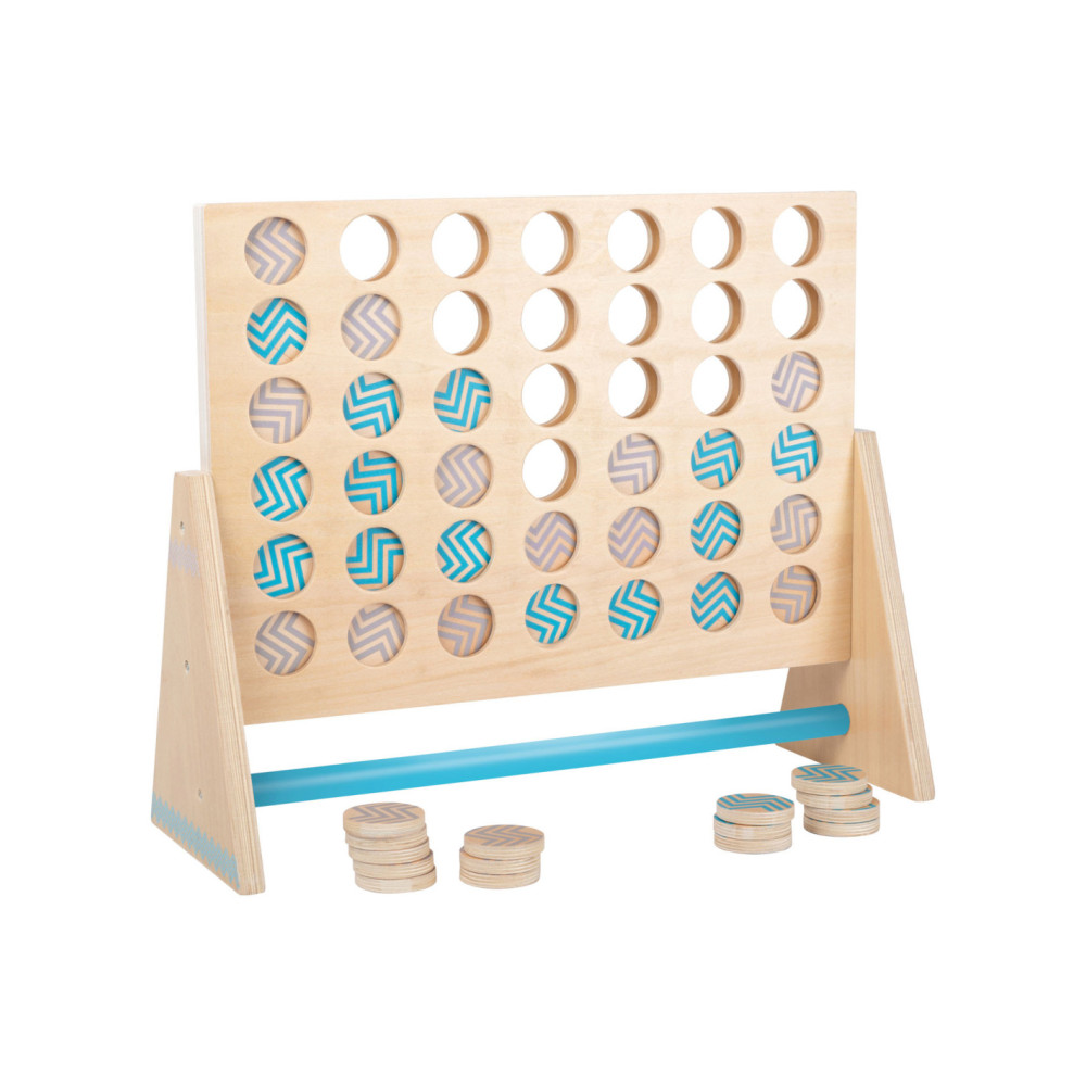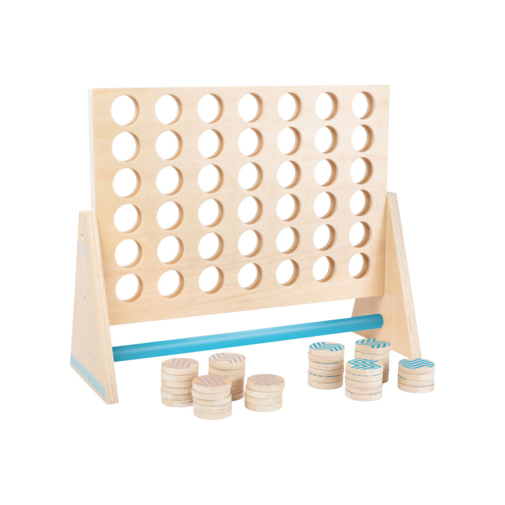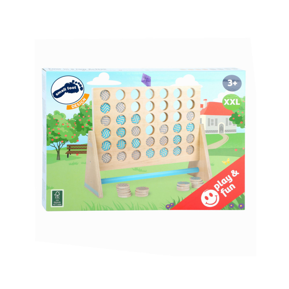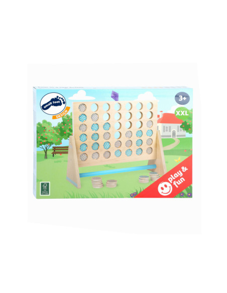 Dit klassieke “Vier op een rij” spel is gemaakt van 100% FSC-gecertificeerd hout. Het XXL-formaat zorgt voor veel speelplezier voor kinderen en volwassenen. Hier moet je met logica en concentratie proberen om vier stukken van dezelfde kleur op een rij te zetten. De grotere stukken kunnen gemakkelijk worden gepakt en bieden alle spelers een beter overzicht van de score. Ook ideaal om buiten mee te spelen! Wie wordt de winnaar dankzij de kleurrijke tegels en slimme combinaties?