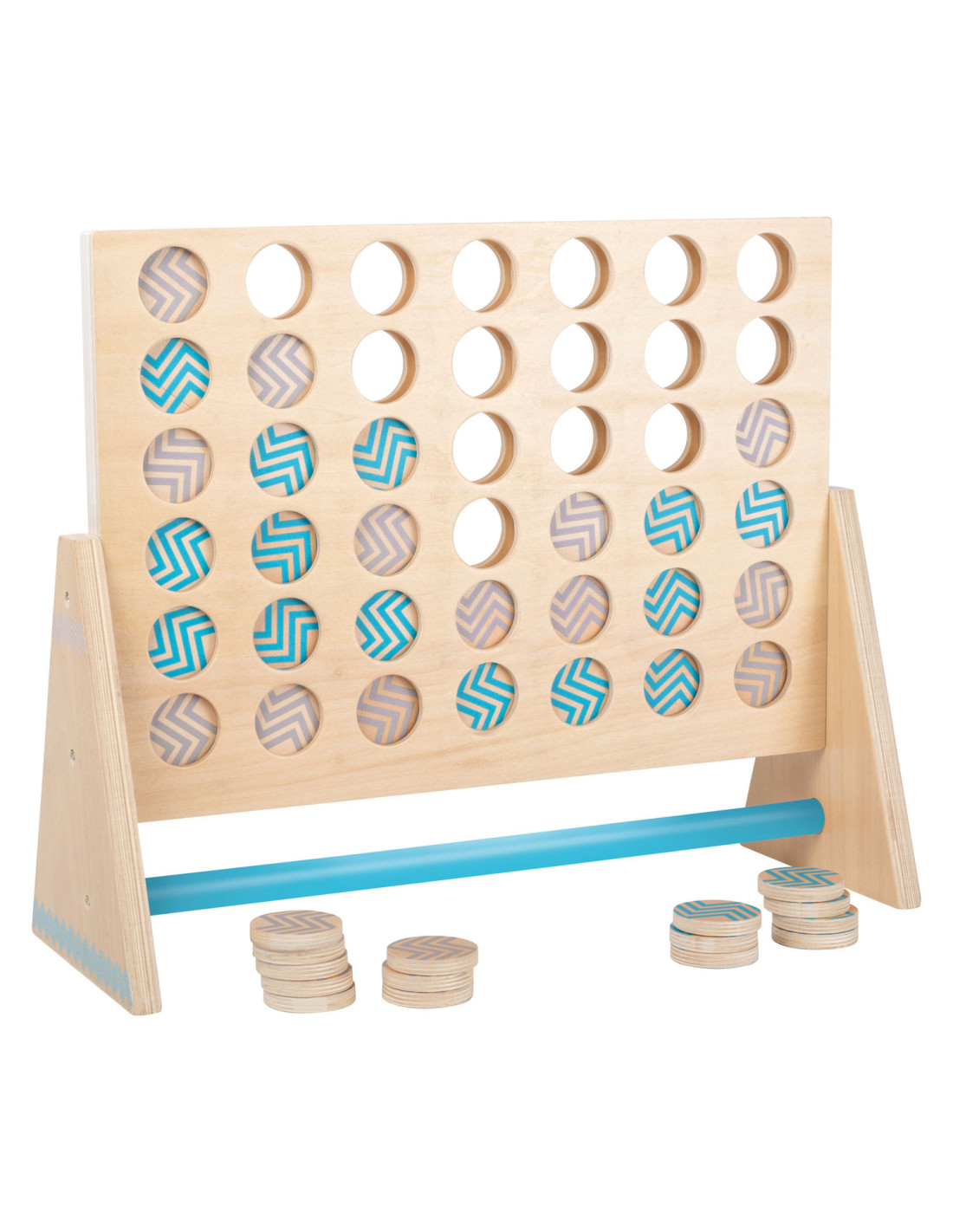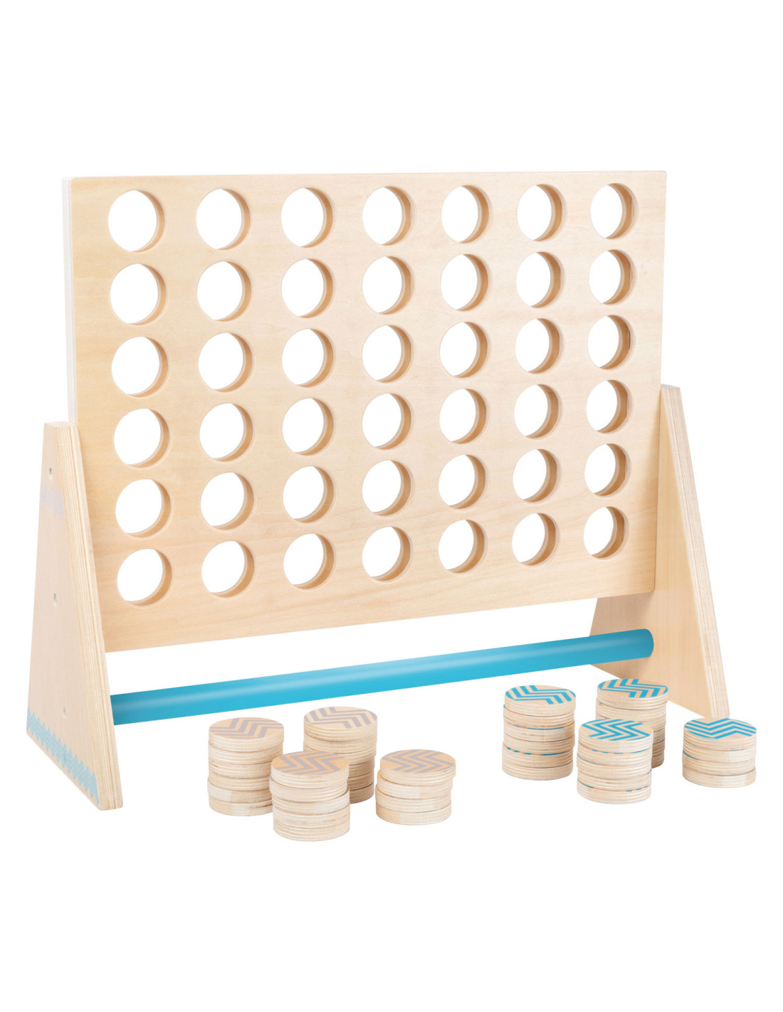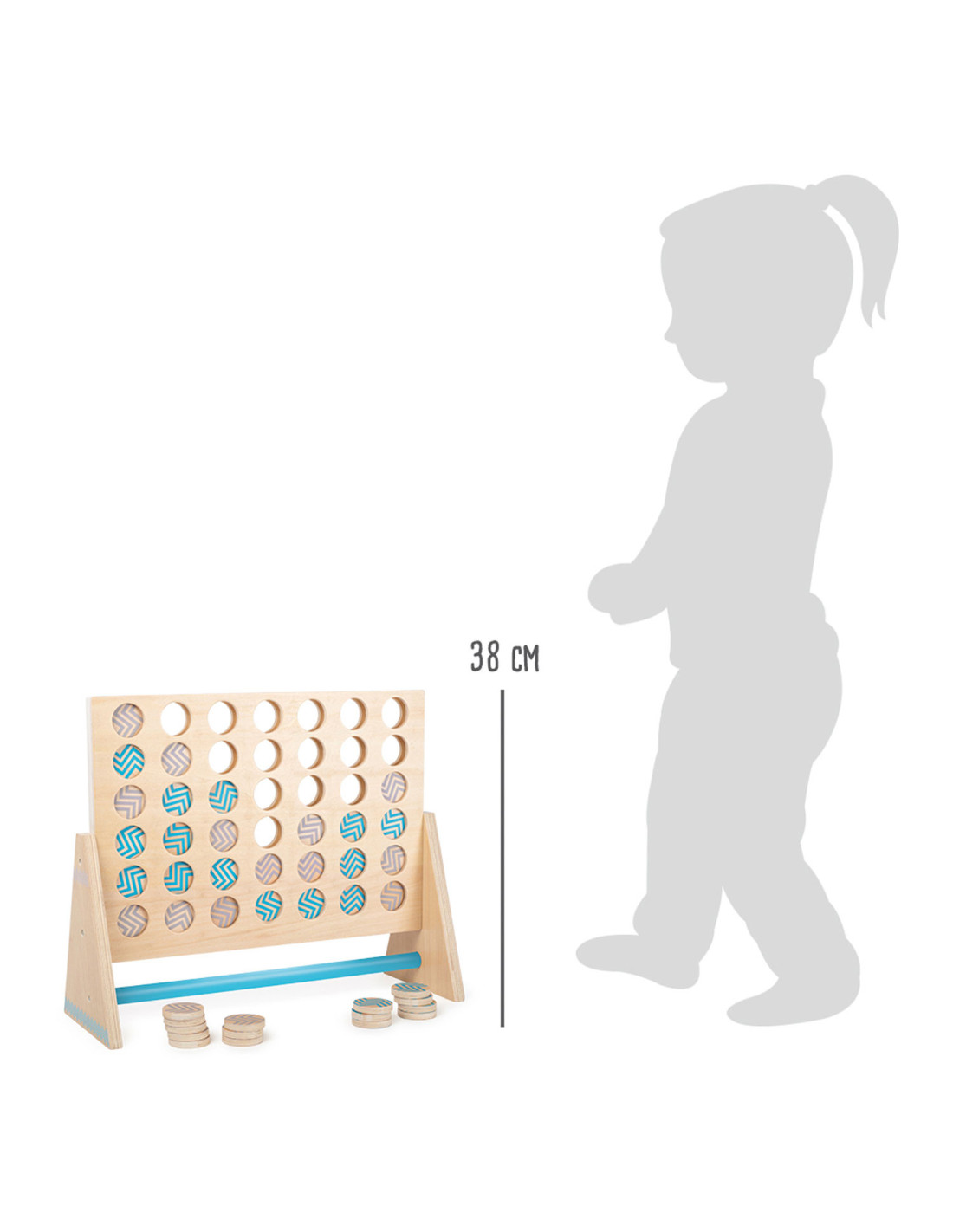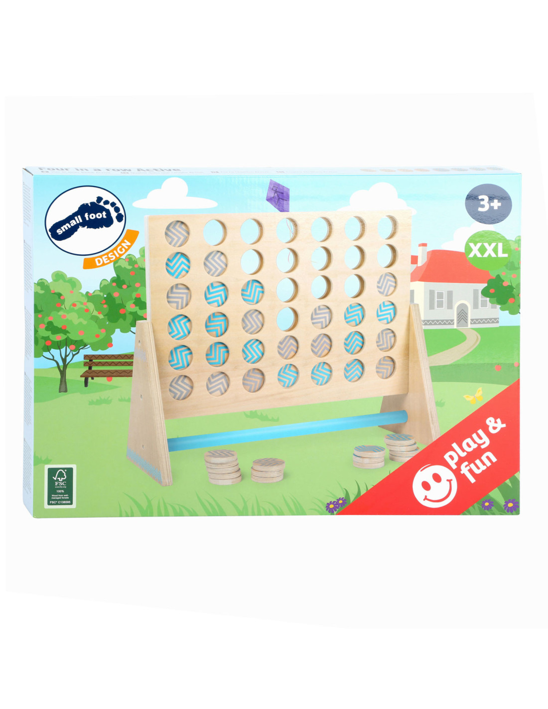 Dit klassieke “Vier op een rij” spel is gemaakt van 100% FSC-gecertificeerd hout. Het XXL-formaat zorgt voor veel speelplezier voor kinderen en volwassenen. Hier moet je met logica en concentratie proberen om vier stukken van dezelfde kleur op een rij te zetten. De grotere stukken kunnen gemakkelijk worden gepakt en bieden alle spelers een beter overzicht van de score. Ook ideaal om buiten mee te spelen! Wie wordt de winnaar dankzij de kleurrijke tegels en slimme combinaties?