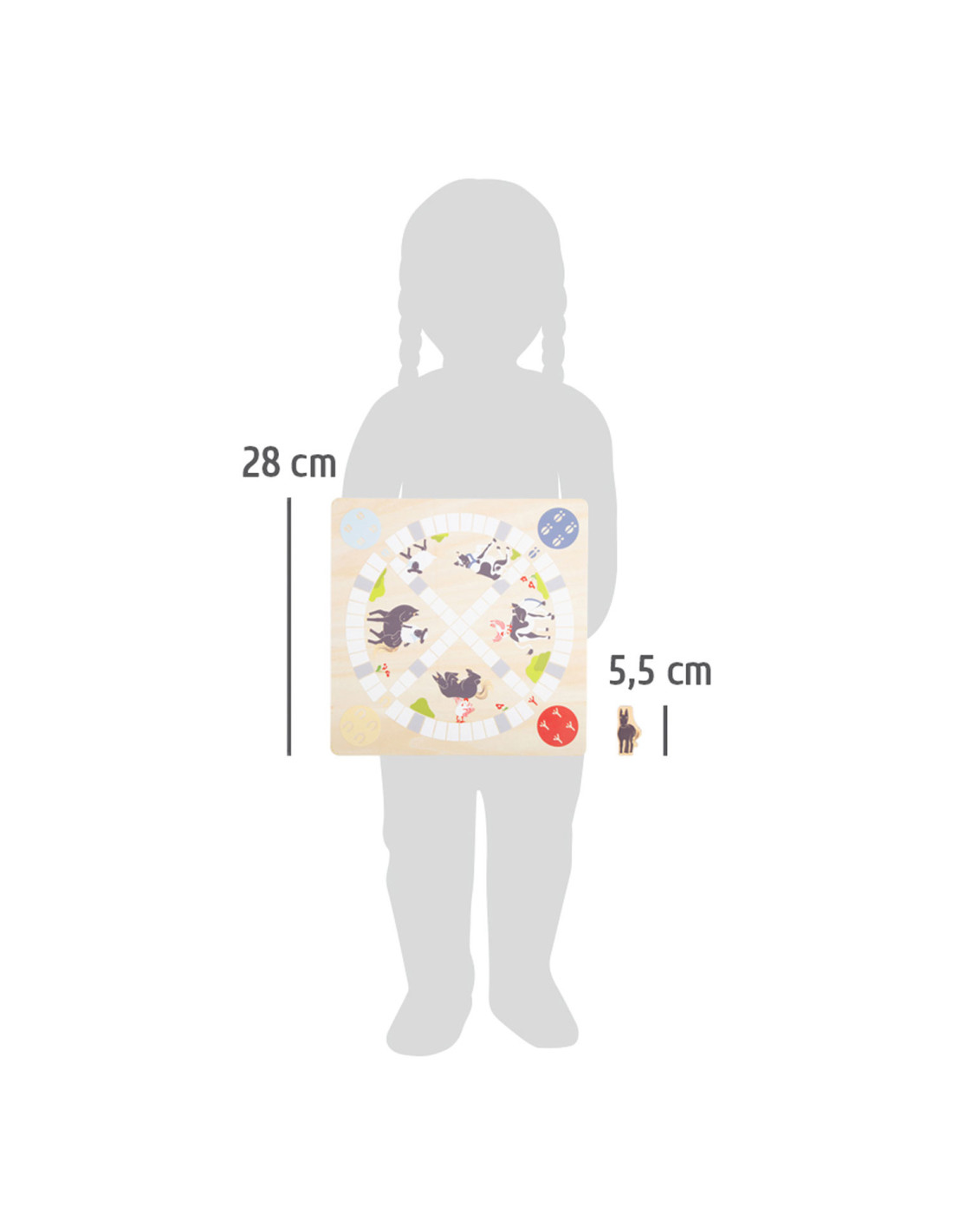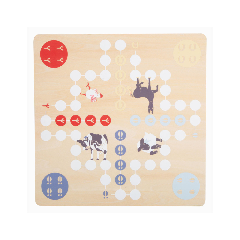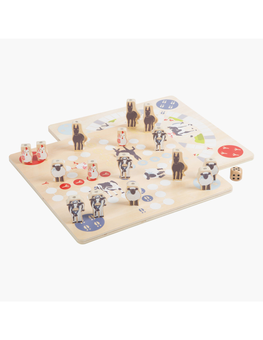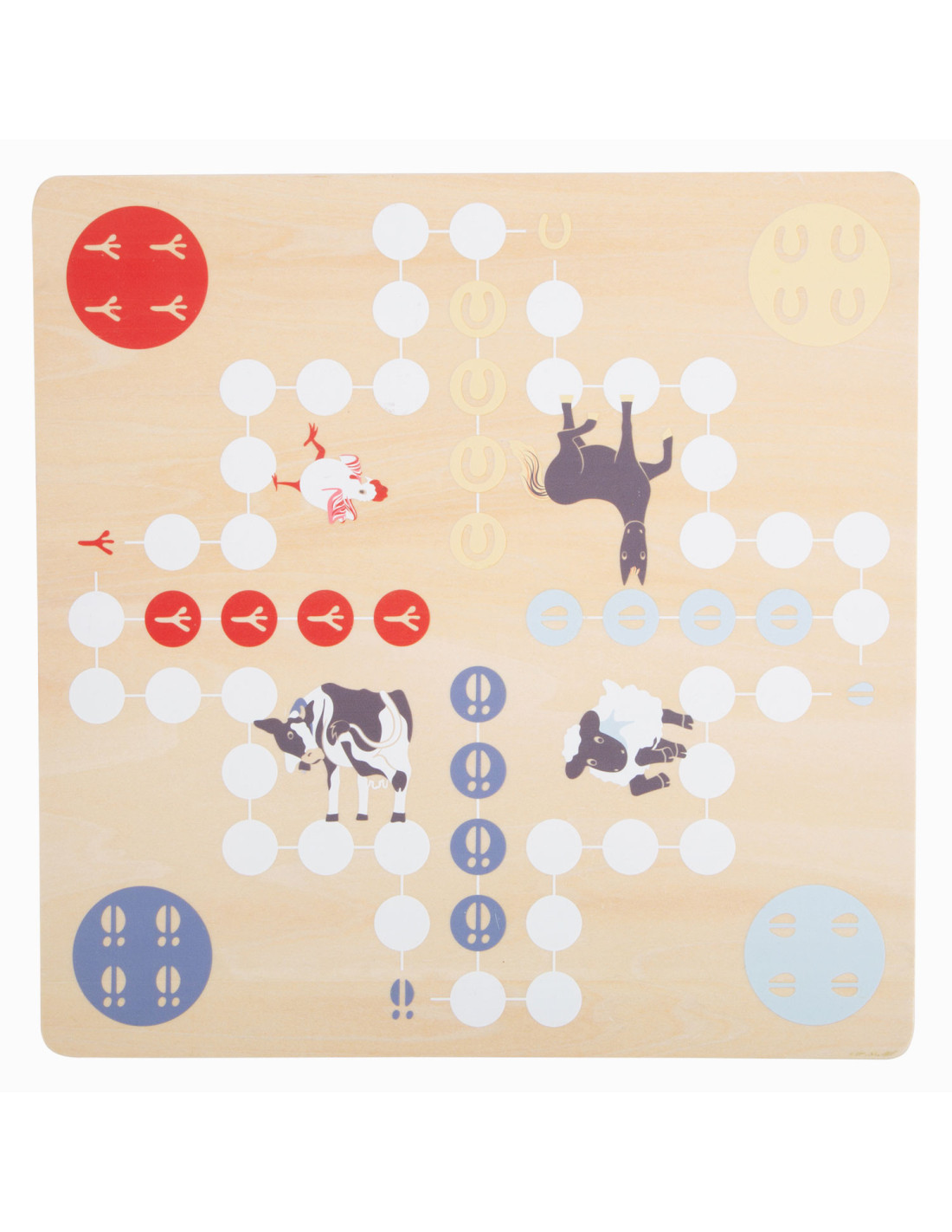 Met deze kindvriendelijke spellencollectie uit de spelproductlijn “4 Friends”, hebben “Heinz” de haan, “Fritz” het paard, “Olga” de koe en “Schippy” het schaap alle mogelijkheden om spelenderwijs de wereld te verkennen om hen heen op hun boerderij. Of het nu gaat om de klassieke Ludo, het leuke ladderspel, de snelle paardenrace of het stapelen van de behendige dieren - deze vier vrienden staan garant voor langdurig speelplezier voor het hele gezin! Magneten in alle speelstukken zorgen ervoor dat de dieren op elkaar kunnen worden gestapeld. Wordt geleverd met cijferdobbelsteen en hoogwaardige opbergdoos. Elk van de dieren vertegenwoordigt een kleur en heeft zijn eigen speciale voetafdruk, zodat ze kunnen worden toegewezen aan hun respectieve startplaatsen. Naast het speelplezier leren kinderen tegelijkertijd ook welk dier welke voetafdruk heeft.