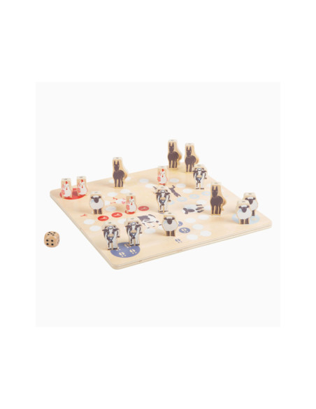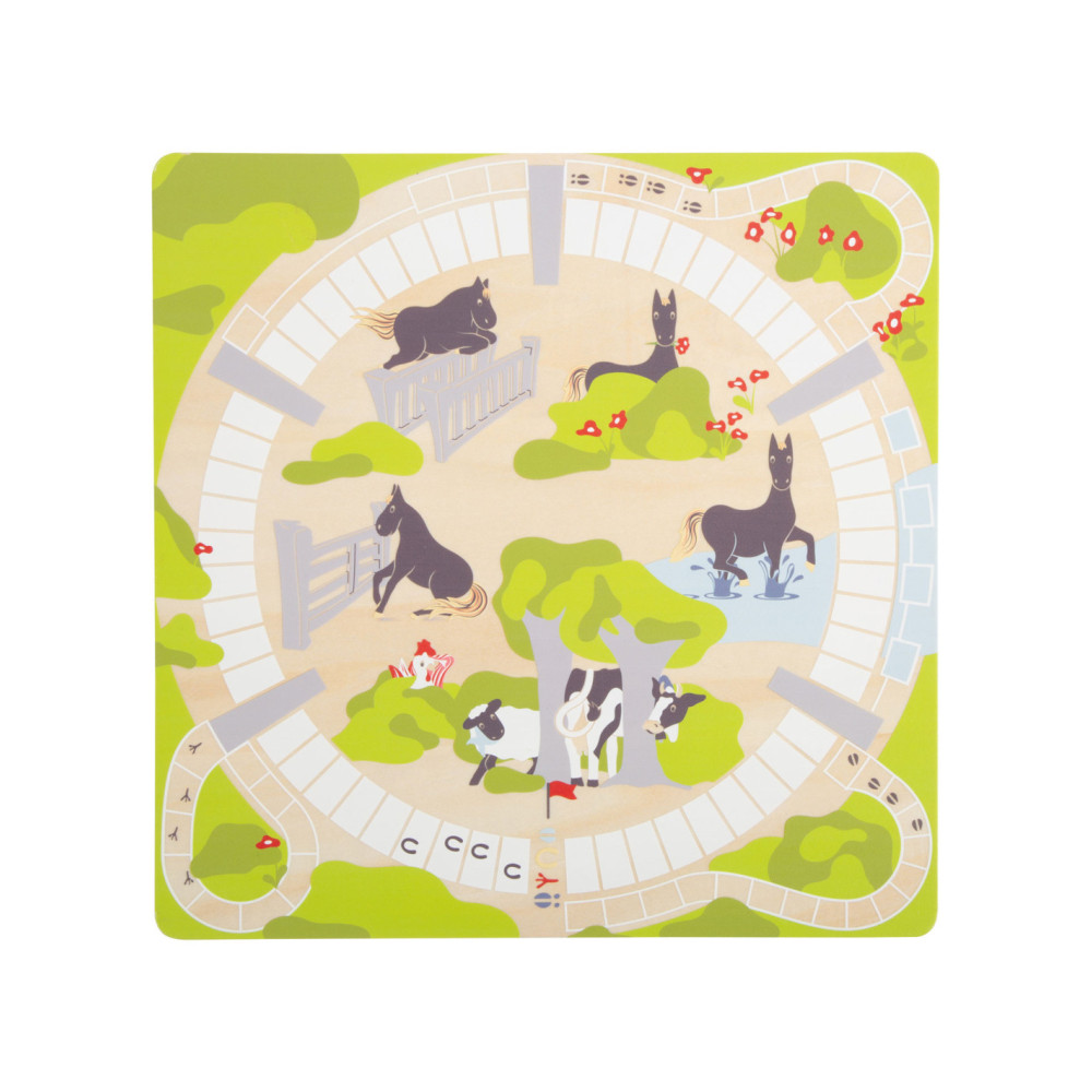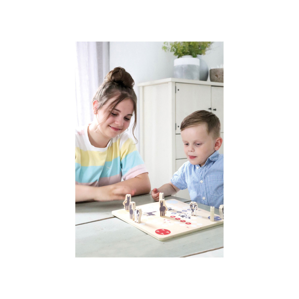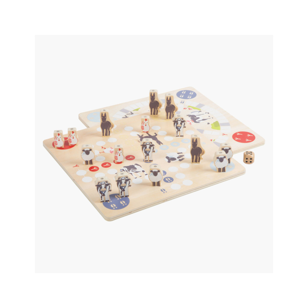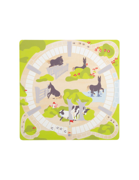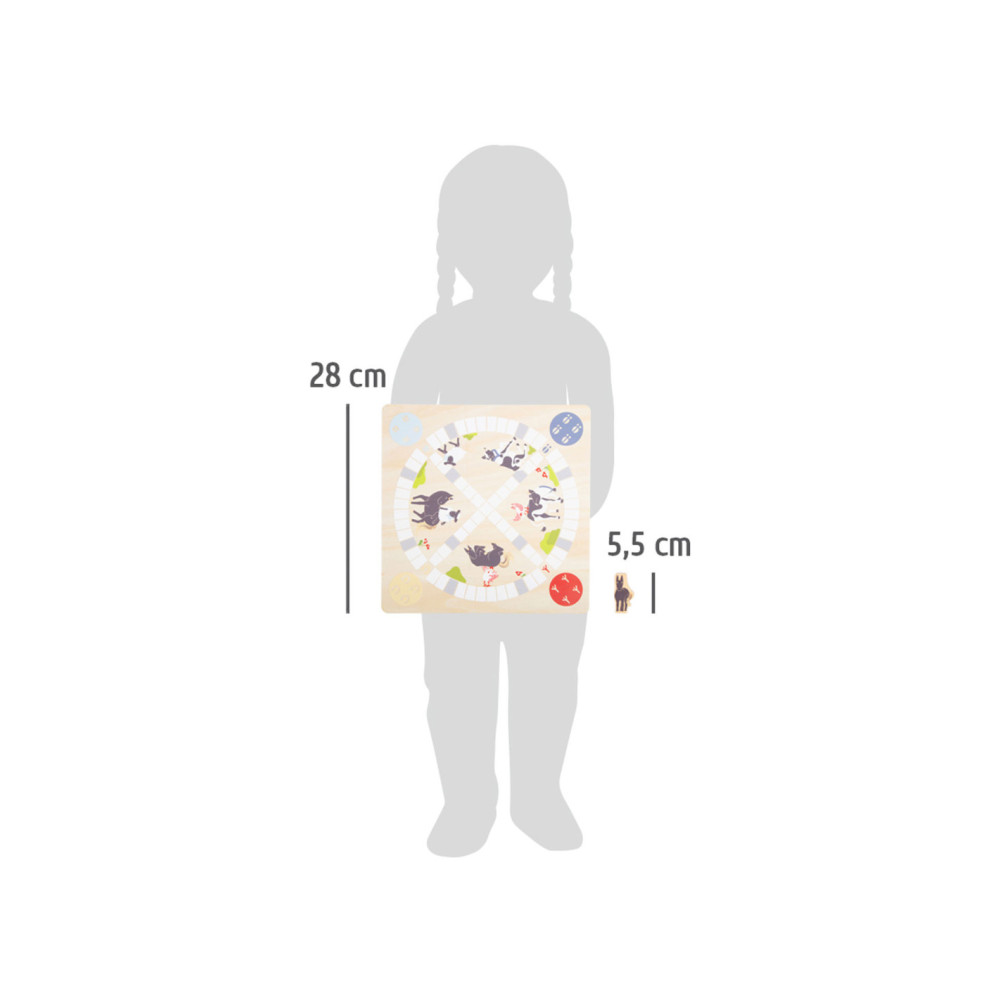 Met deze kindvriendelijke spellencollectie uit de spelproductlijn “4 Friends”, hebben “Heinz” de haan, “Fritz” het paard, “Olga” de koe en “Schippy” het schaap alle mogelijkheden om spelenderwijs de wereld te verkennen om hen heen op hun boerderij. Of het nu gaat om de klassieke Ludo, het leuke ladderspel, de snelle paardenrace of het stapelen van de behendige dieren - deze vier vrienden staan garant voor langdurig speelplezier voor het hele gezin! Magneten in alle speelstukken zorgen ervoor dat de dieren op elkaar kunnen worden gestapeld. Wordt geleverd met cijferdobbelsteen en hoogwaardige opbergdoos. Elk van de dieren vertegenwoordigt een kleur en heeft zijn eigen speciale voetafdruk, zodat ze kunnen worden toegewezen aan hun respectieve startplaatsen. Naast het speelplezier leren kinderen tegelijkertijd ook welk dier welke voetafdruk heeft.
