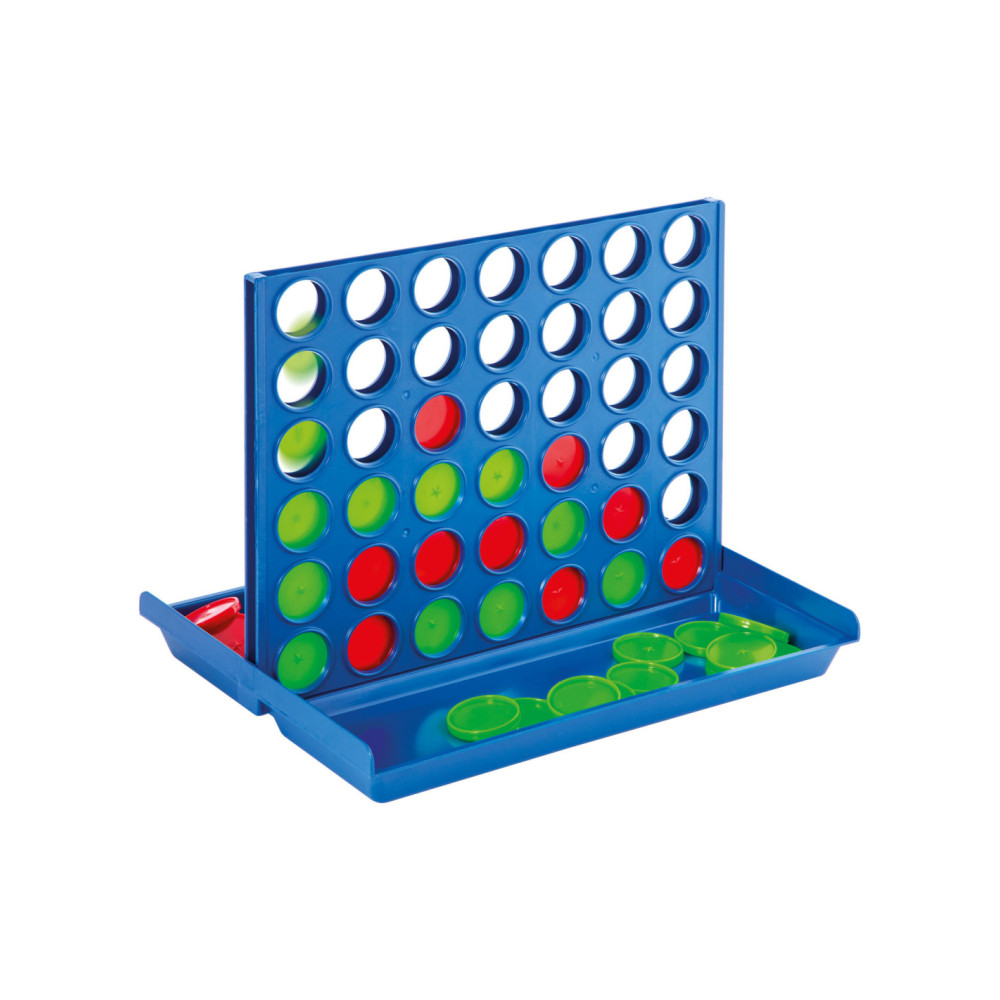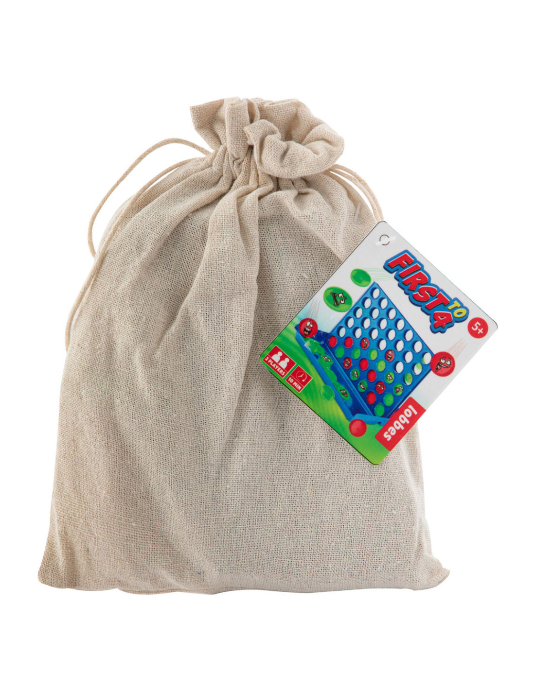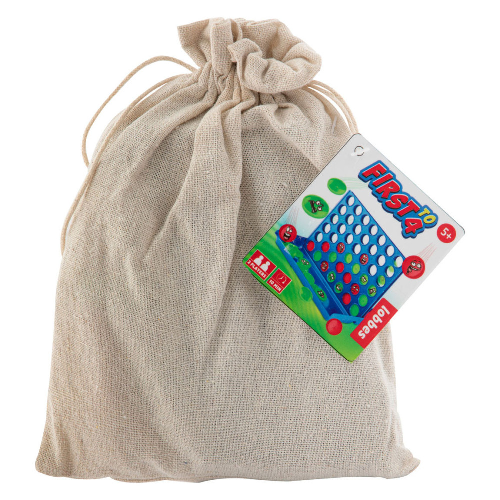 Vier op een rij met rode en greoen chips. In handige canvas opbergtas. Geschikt voor 2 spelers vanaf 5 jaar.