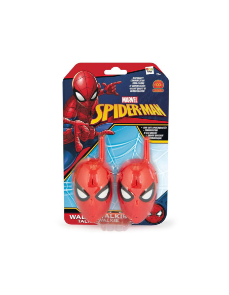 Urenlang speelplezier met deze Marvel Spiderman Walkie Talkie set! Op de Walkie Talkies staan de afbeeldingen van het gezicht van Spiderman. De rode Walkie Talkies hebben een uitstekende spreekkwaliteit, zijn ongeveer 16 cm groot en kunnen zowel binnen als buiten gebruikt worden. Batterij info: 6 x AAA batterijen (niet meegeleverd). Leeftijdsindicatie: 3 jaar+.