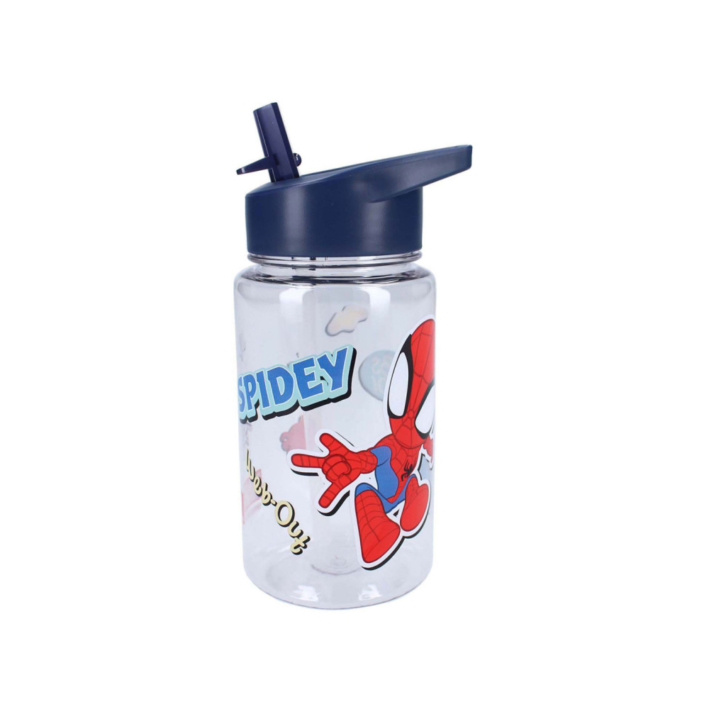 Deze stoere drinkfles van Spidey uit de Drink Up collectie is perfect voor alle Spidey-fans! Met als afbeelding de enige echte Spidey. Het ingebouwde rietje maakt het gemakkelijk om uit de drinkfles te drinken. Aan het rode handvat kun je de drinkfles overal naar toe brengen. De fles is doorzichtig met een inhoud van 450ML. Voeg een vleugje avontuurlijkheid toe aan je assortiment met de Spidey drinkfles uit de collectie Drink up!