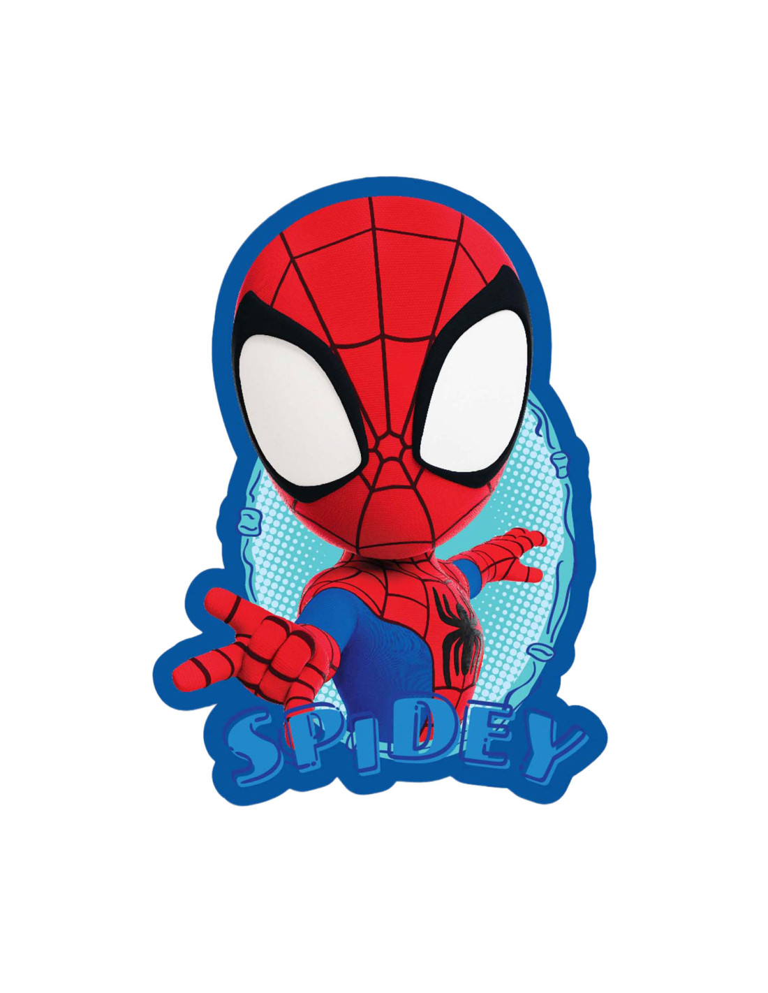 Spidey-vormig kussen van 33 x 32 x 12 cm met print. Gemaakt van zacht polyester. Geschikt vanaf 3 jaar.