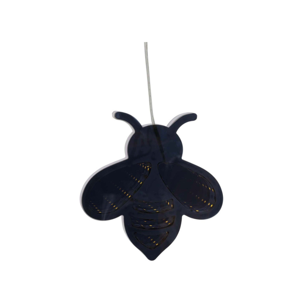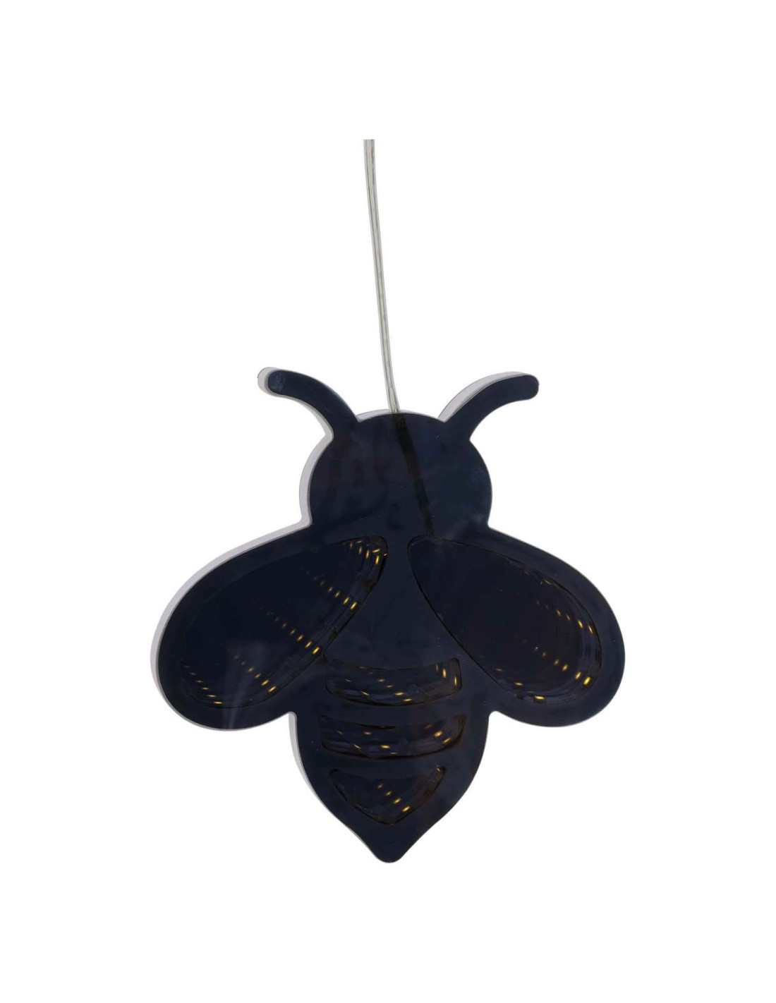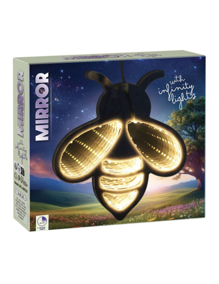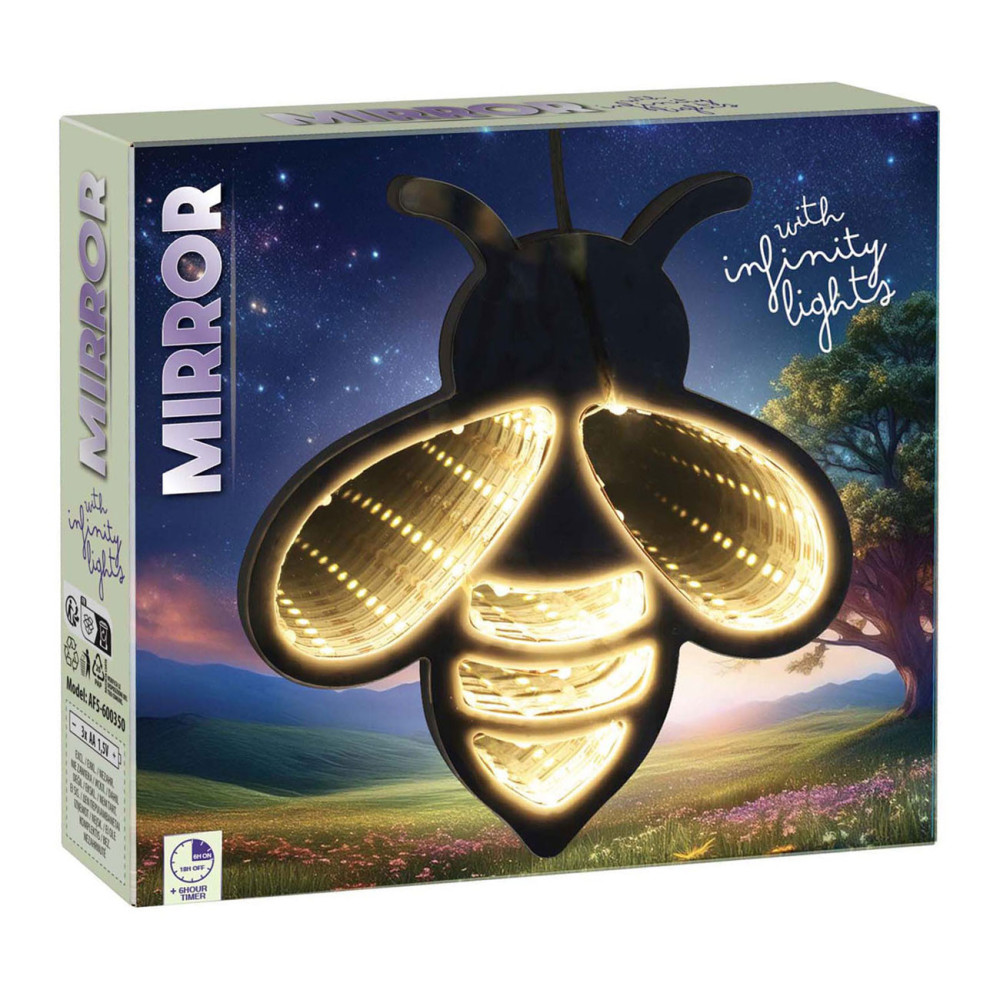 Bijvormige ledlamp met infinity lights dankzij een spiegelend systeem. De lamp werkt op 3 AA batterijen (niet inbegrepen) en is 14 x 14 x 3,5 centimeter groot. De lamp heeft een timer van 6 uur.